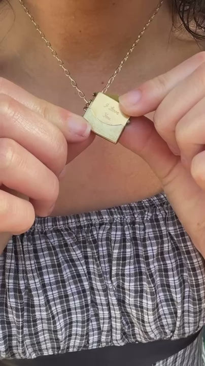 Vintage Brass Envelope Charm with Removable Letter on 14K gold filled chain