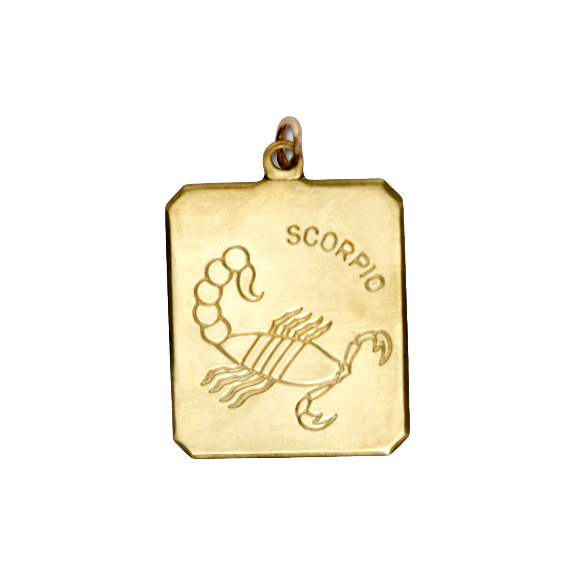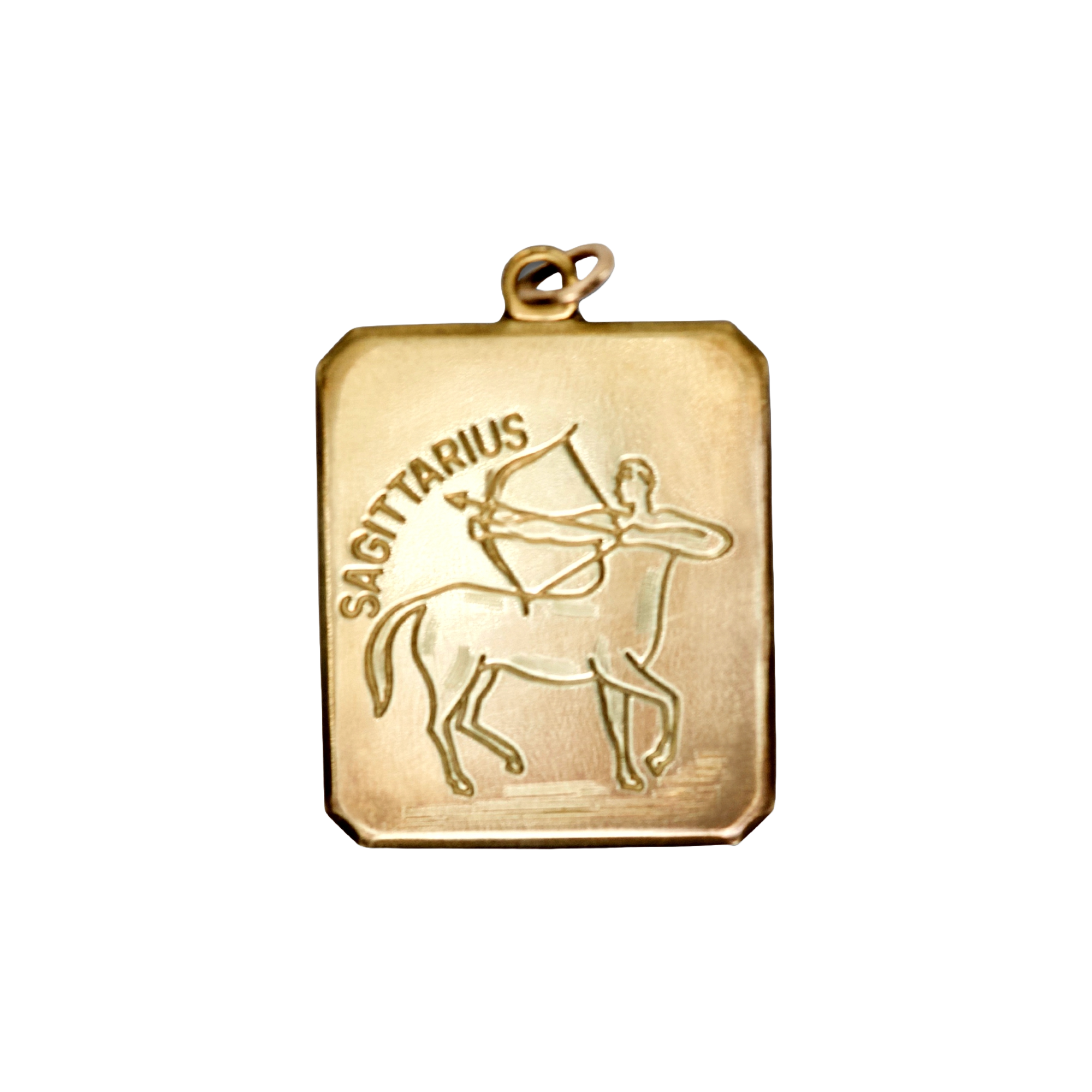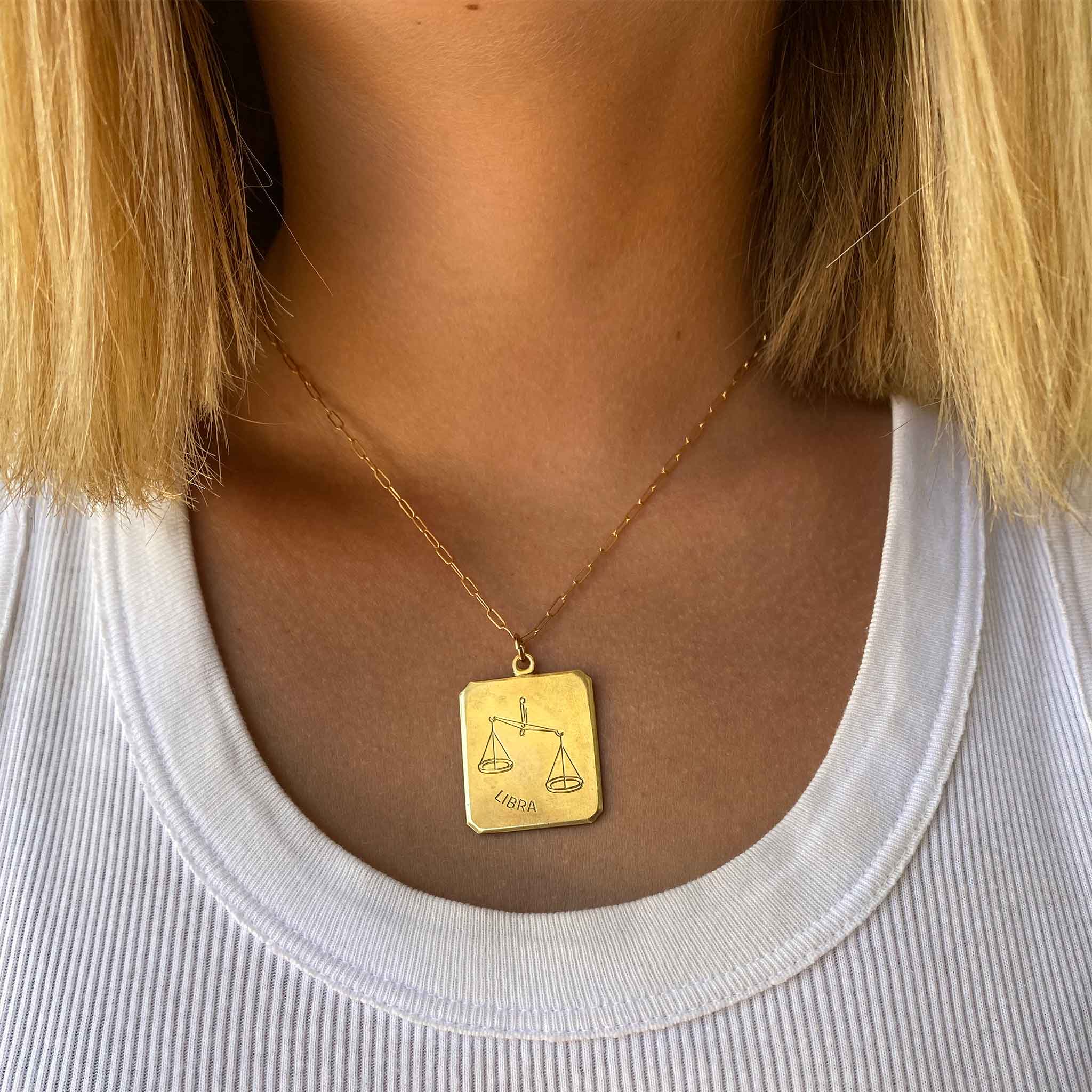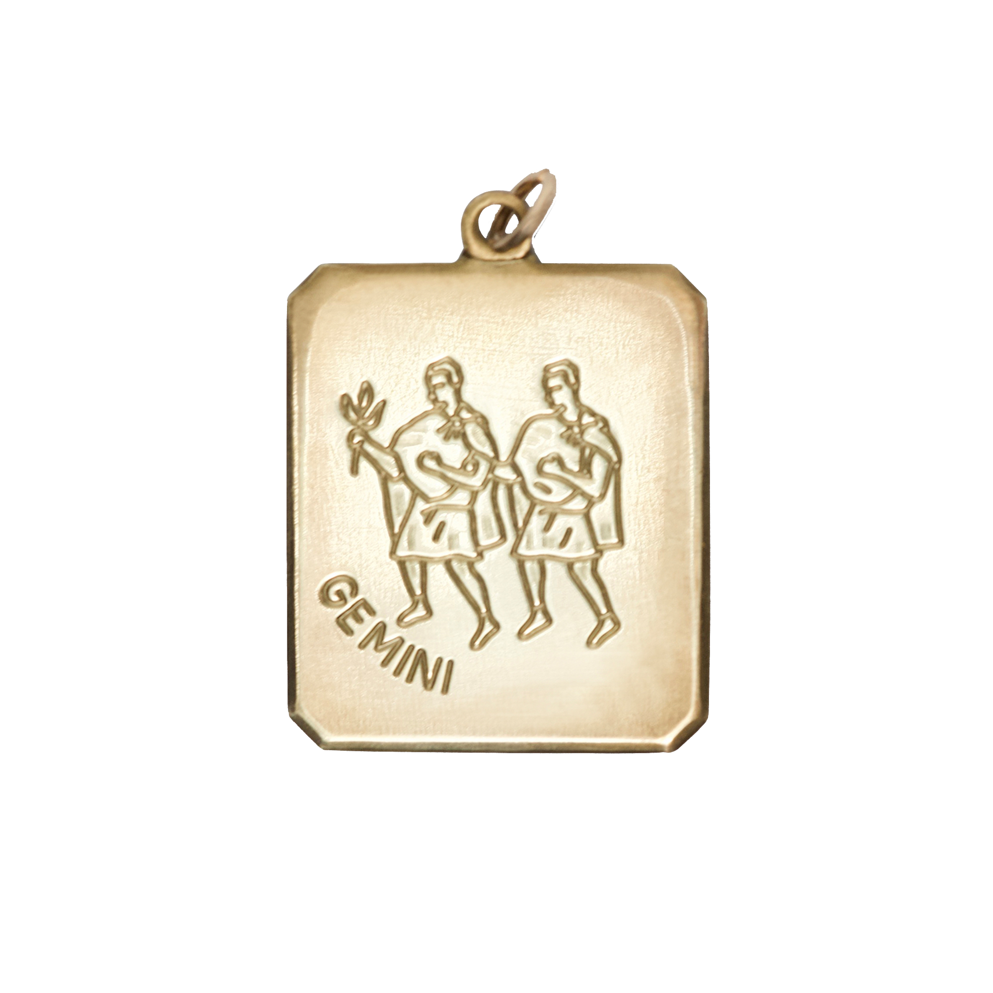 Vintage Brass Rectangular Zodiac Charm Necklace