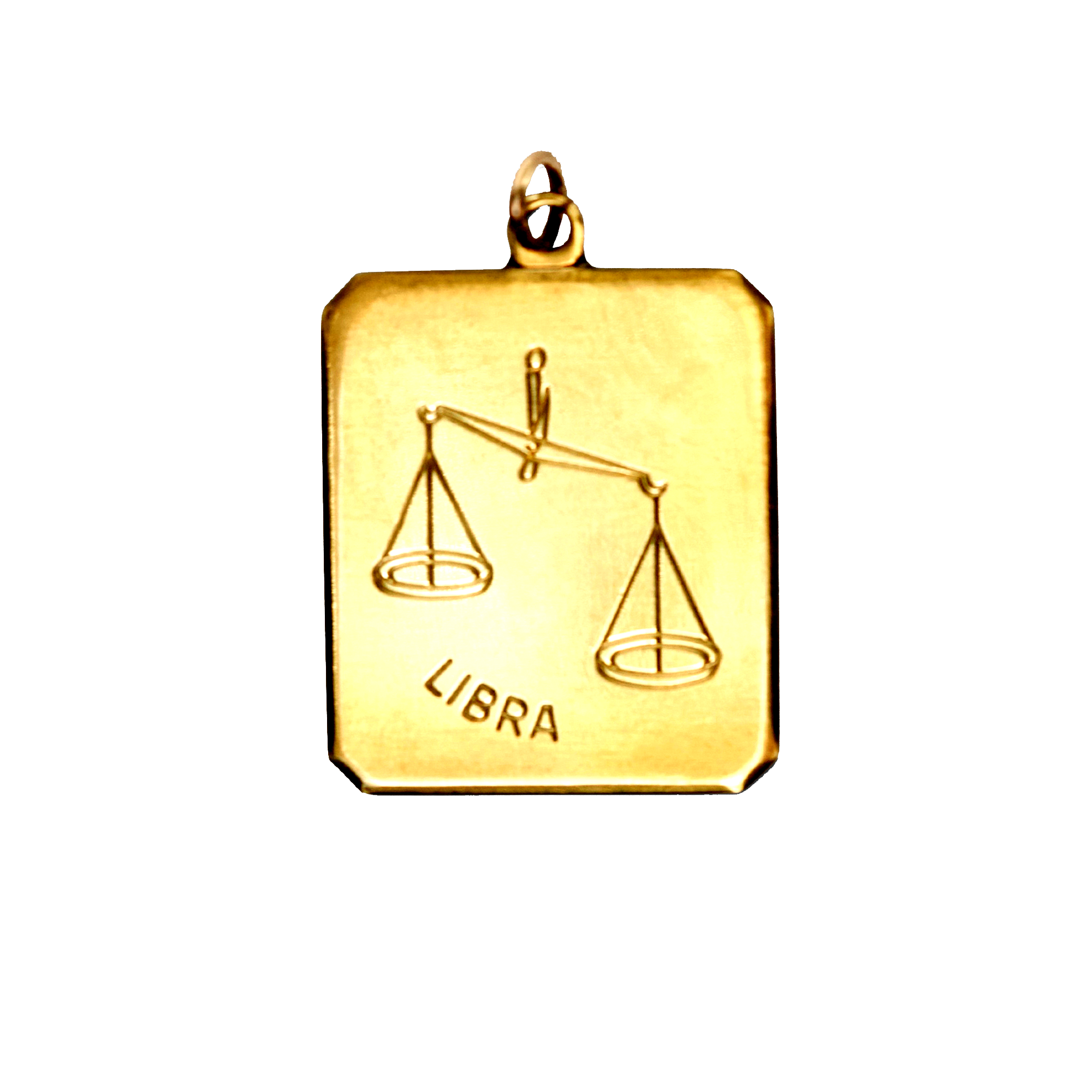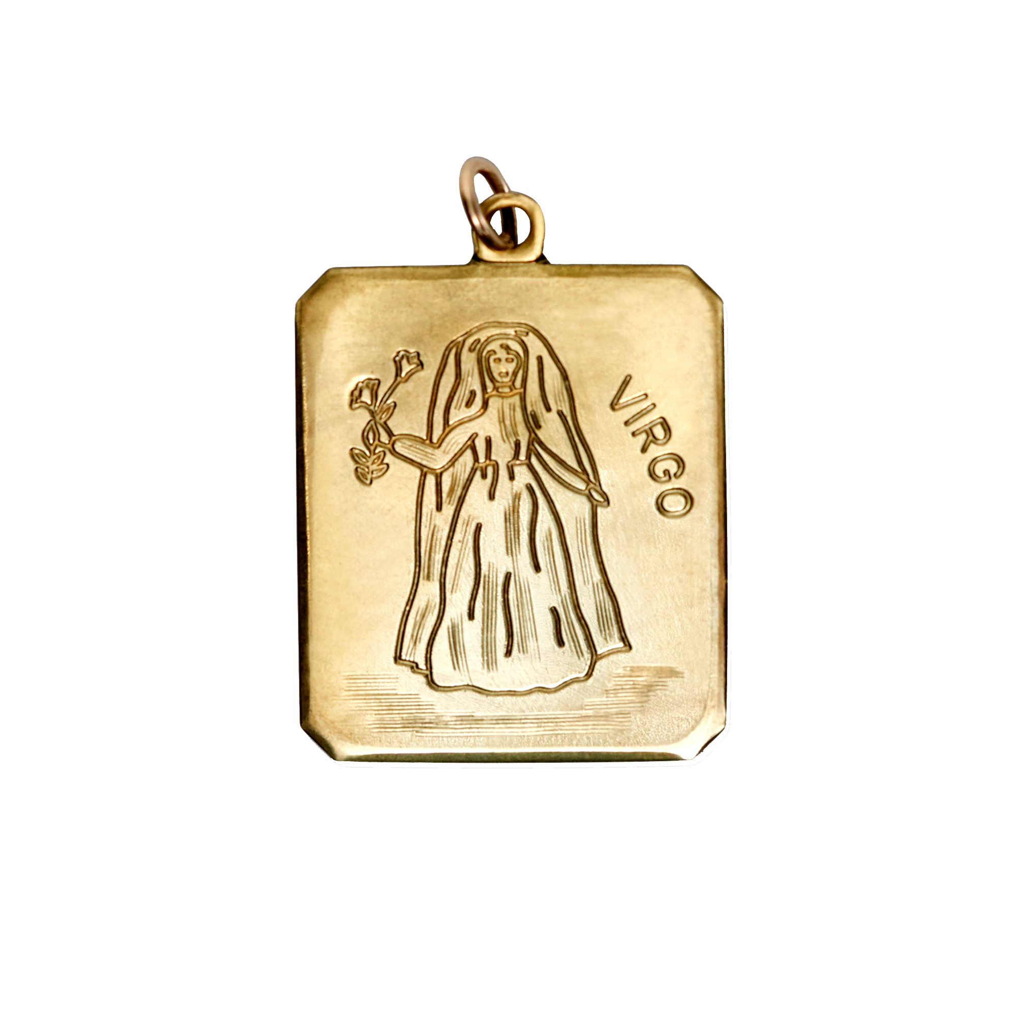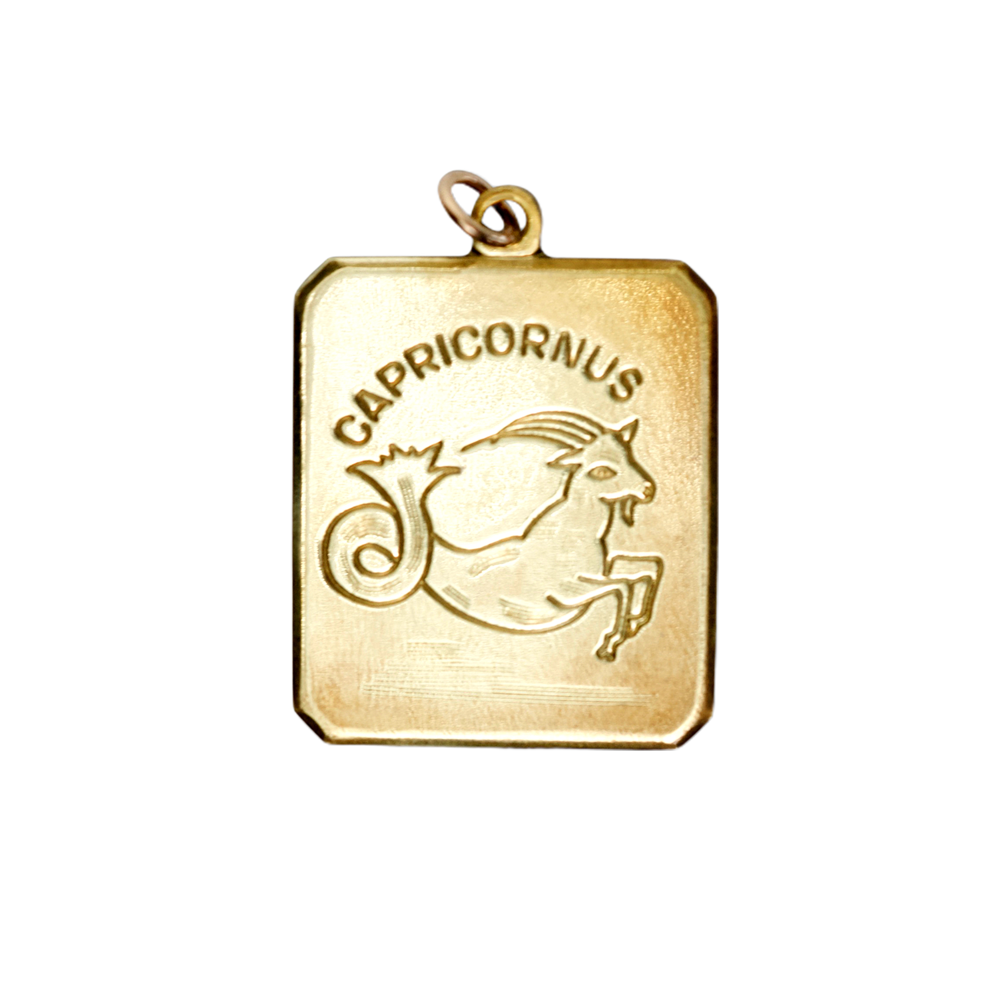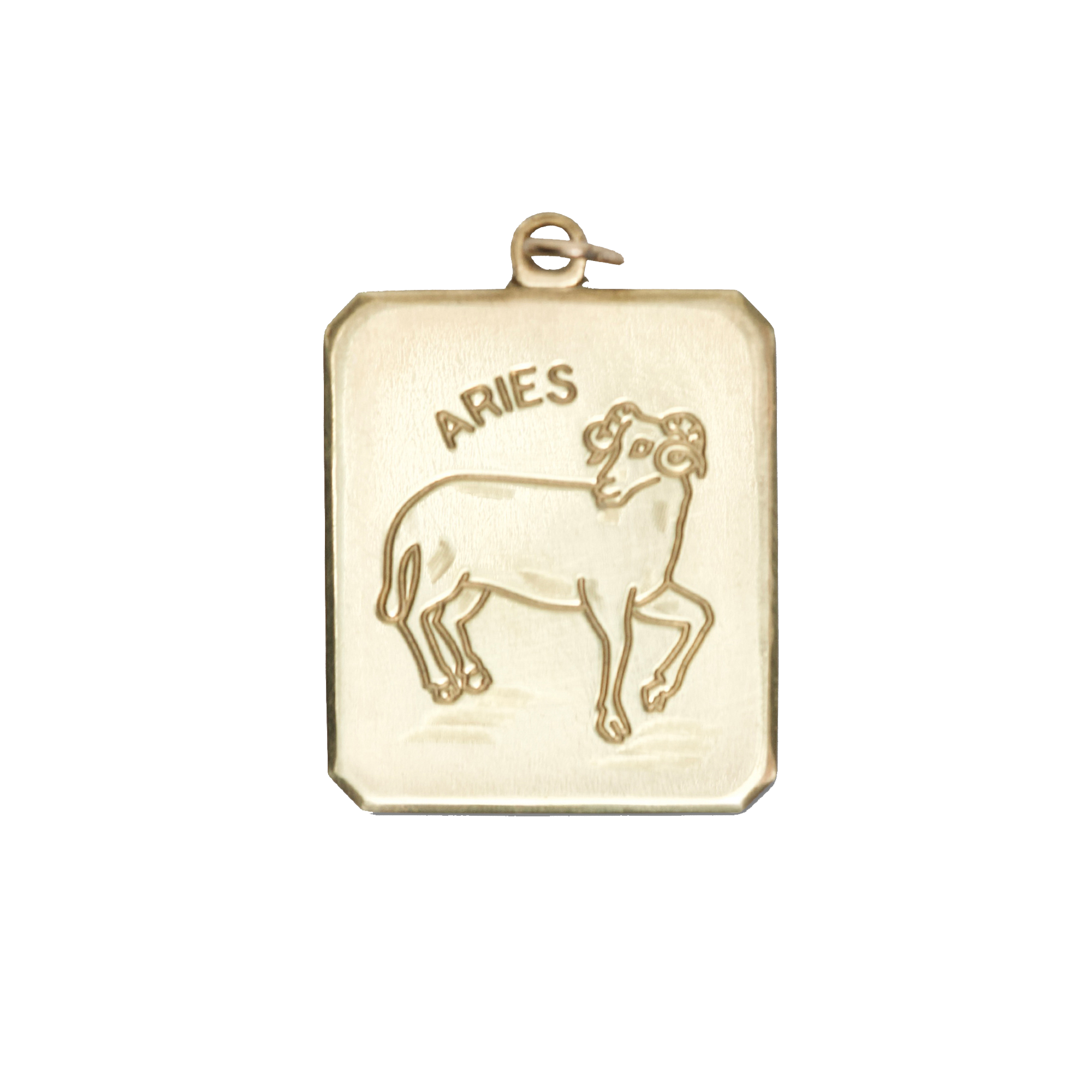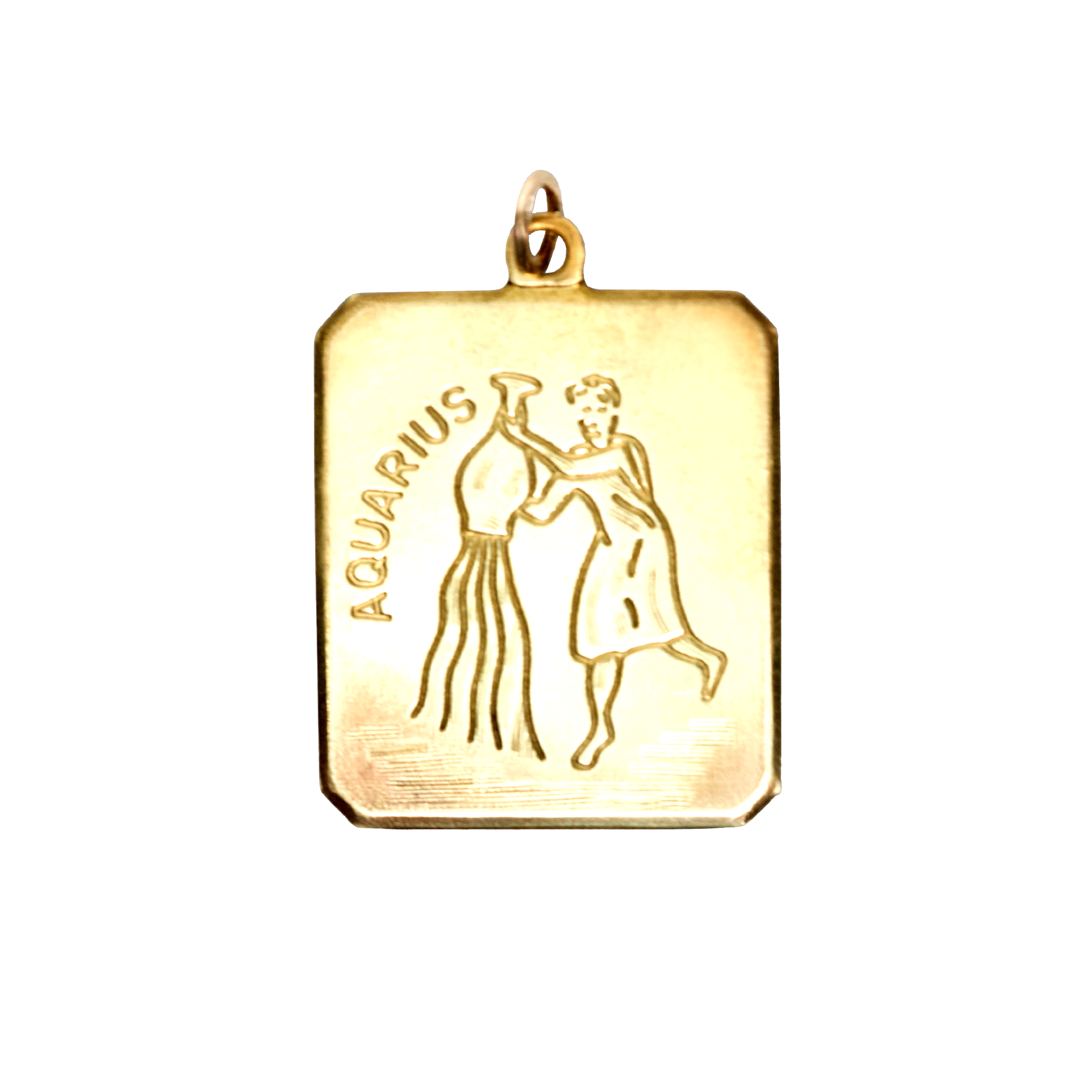 Vintage Brass Rectangular Zodiac Charm Necklace