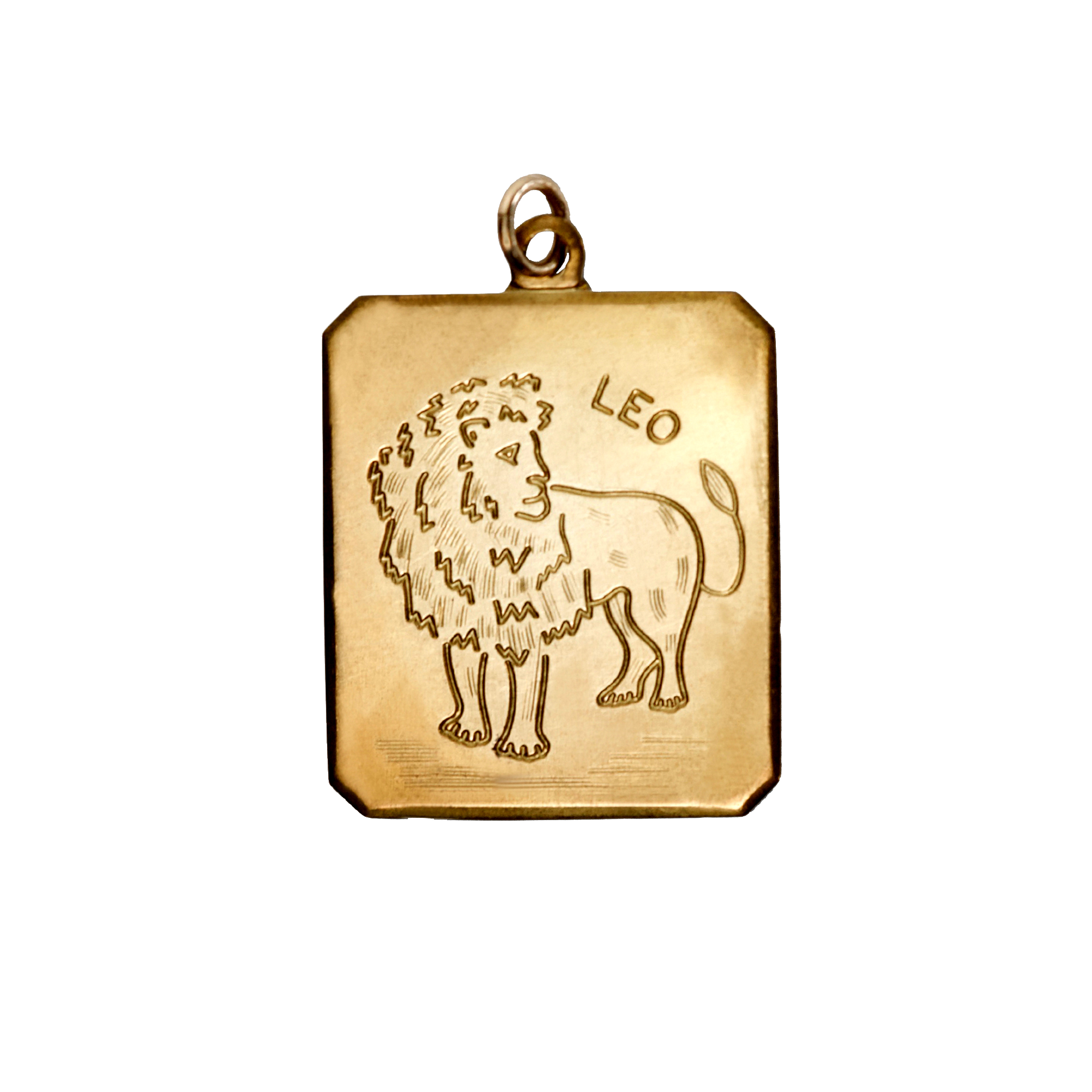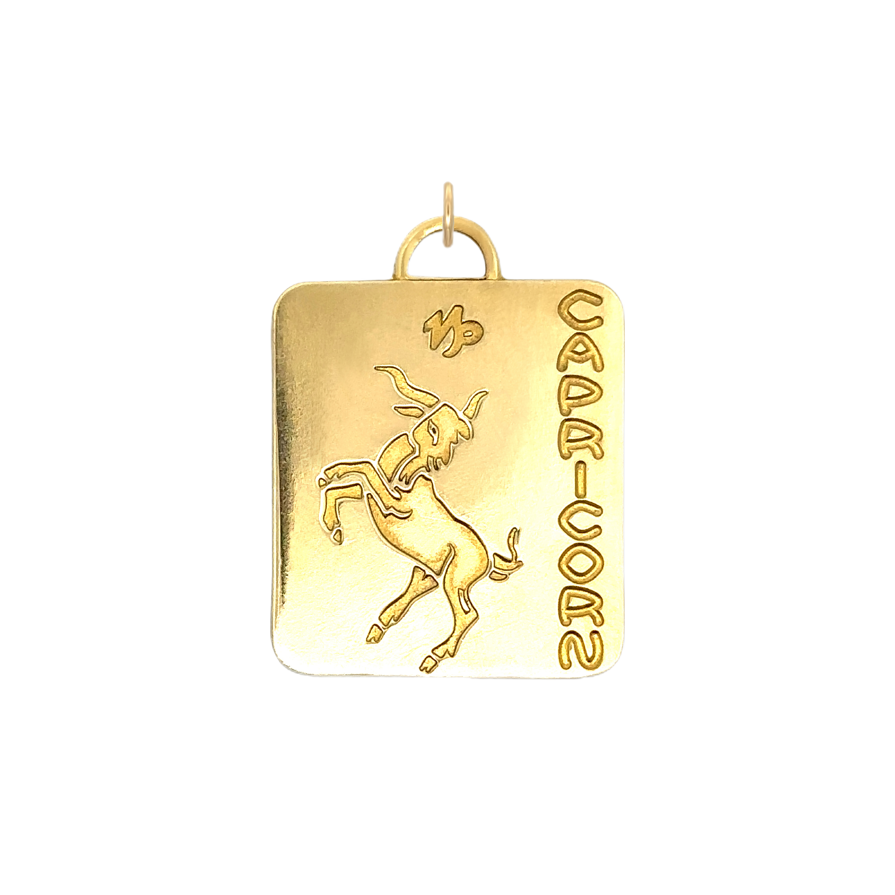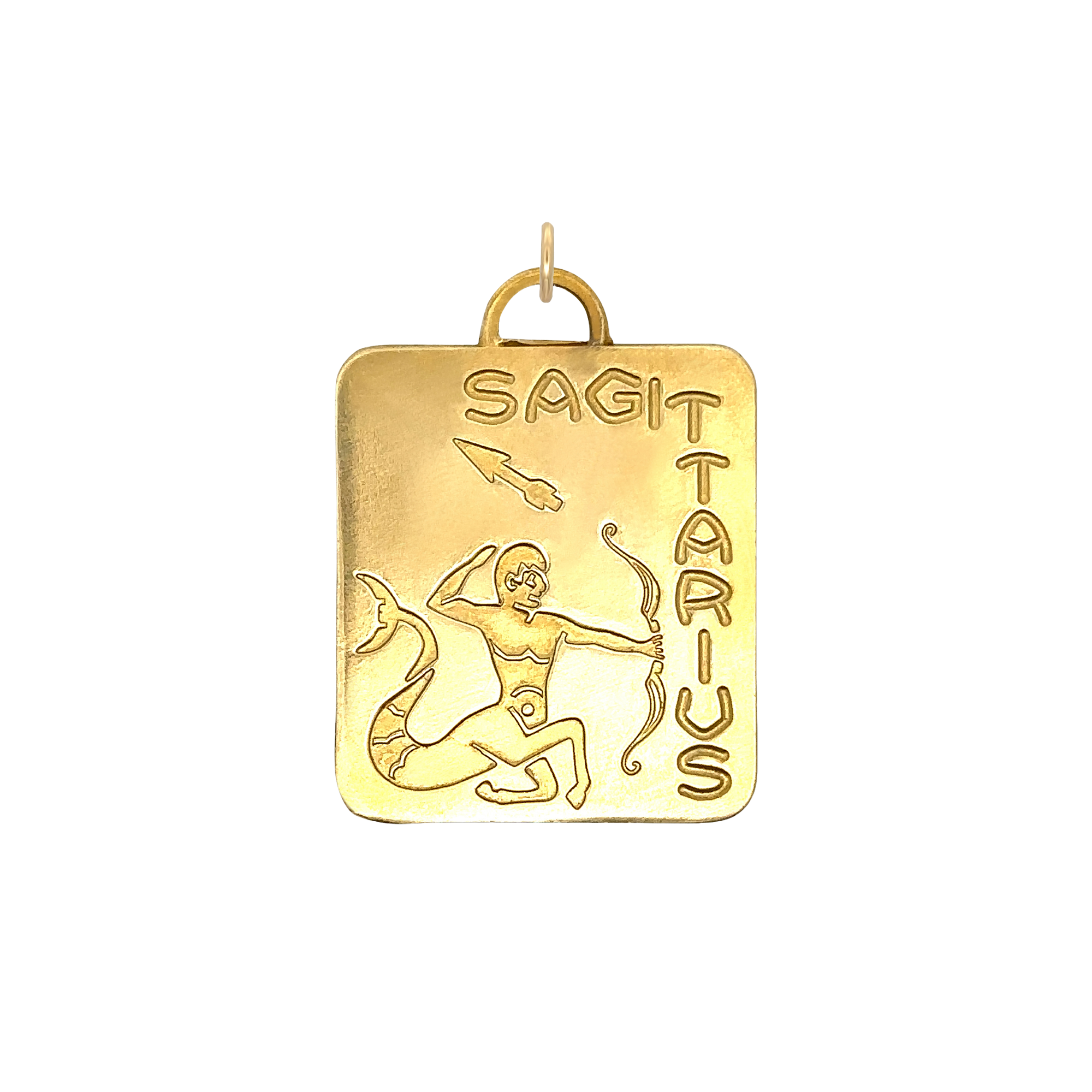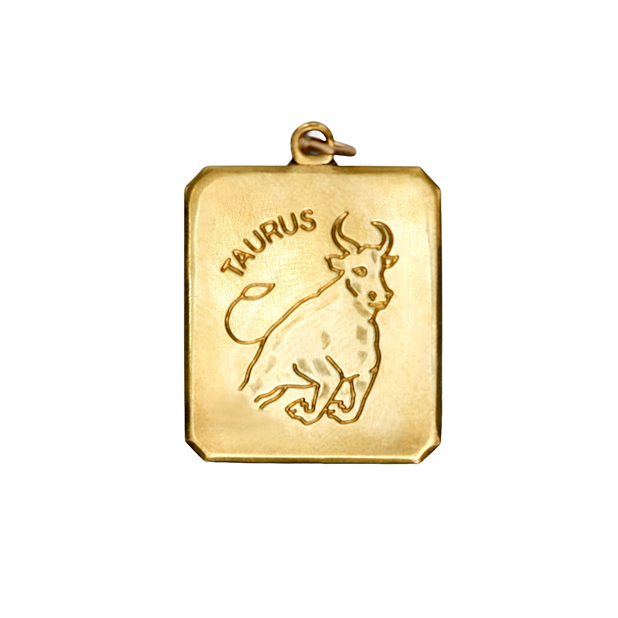 Vintage Brass Rectangular Zodiac Charm Necklace