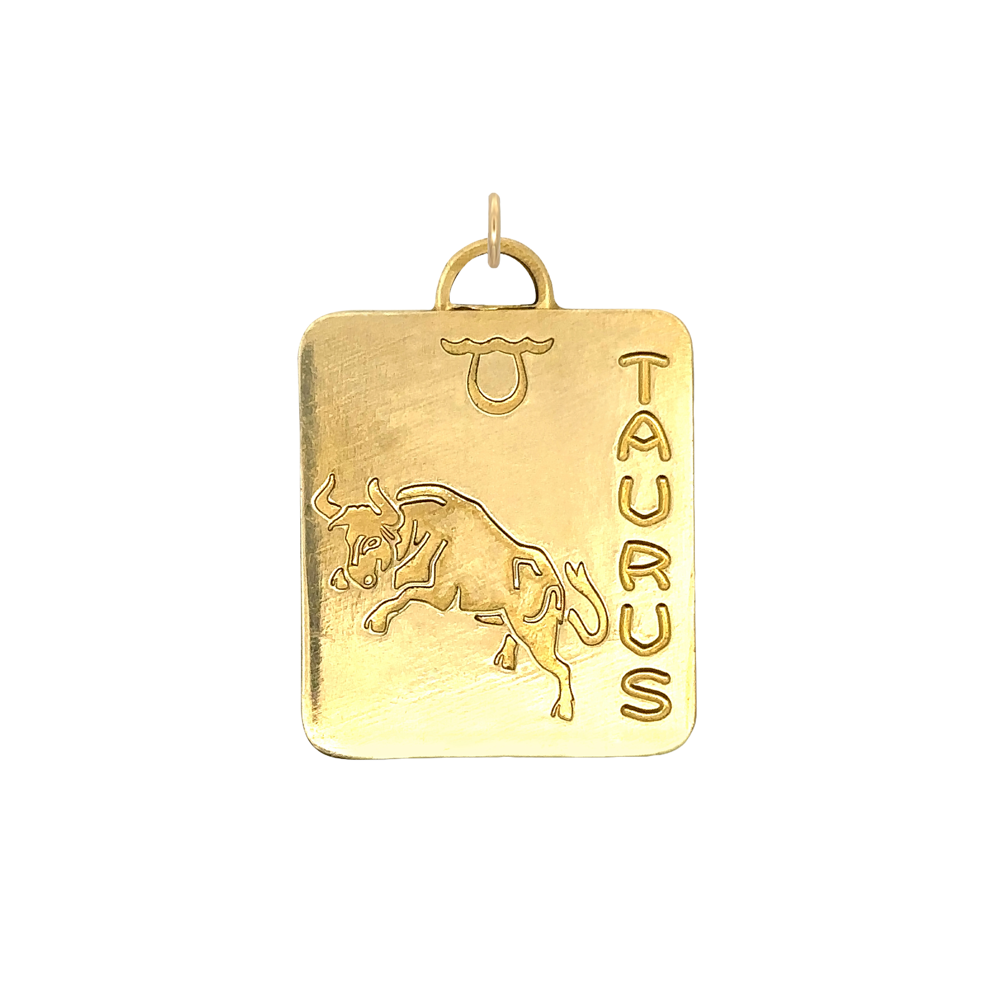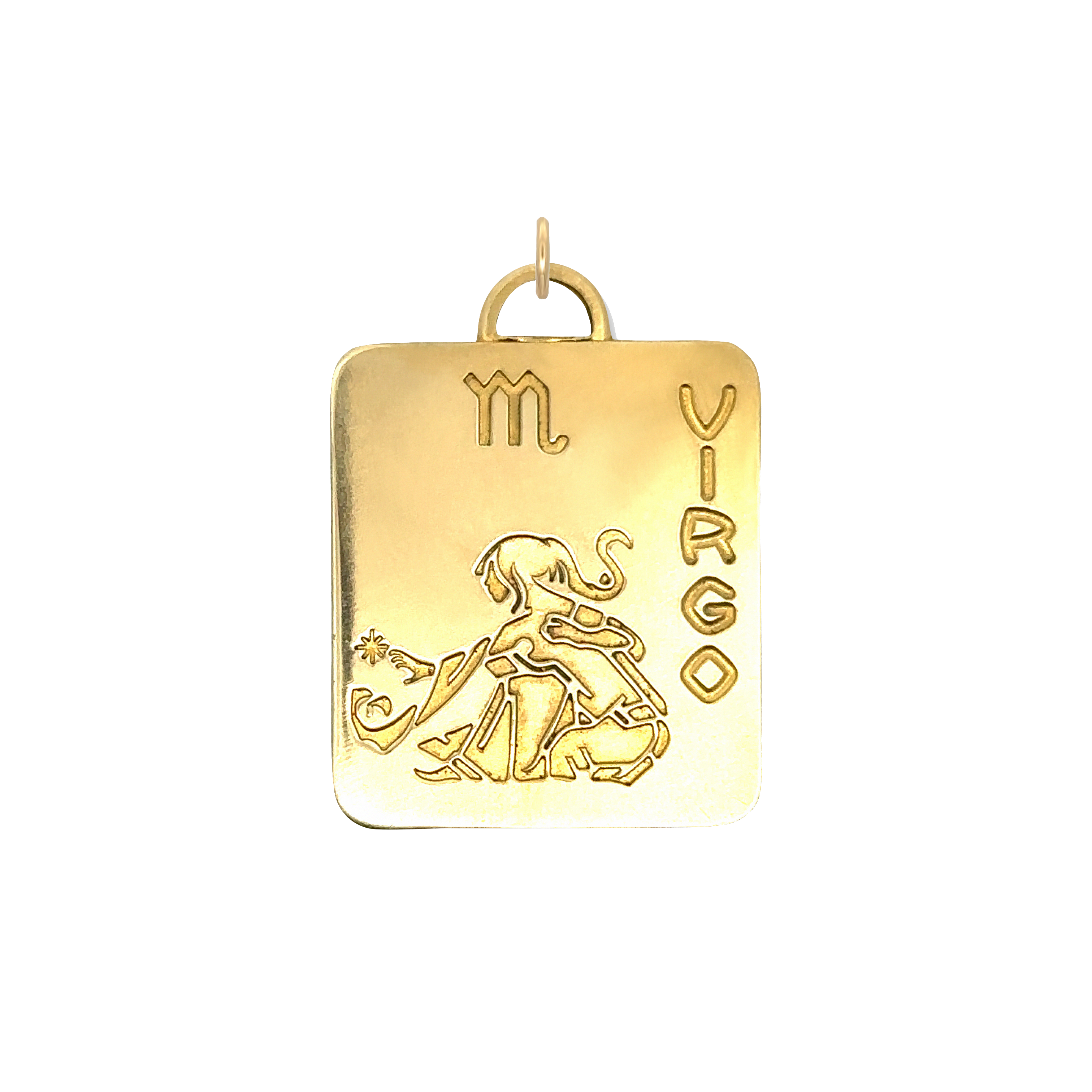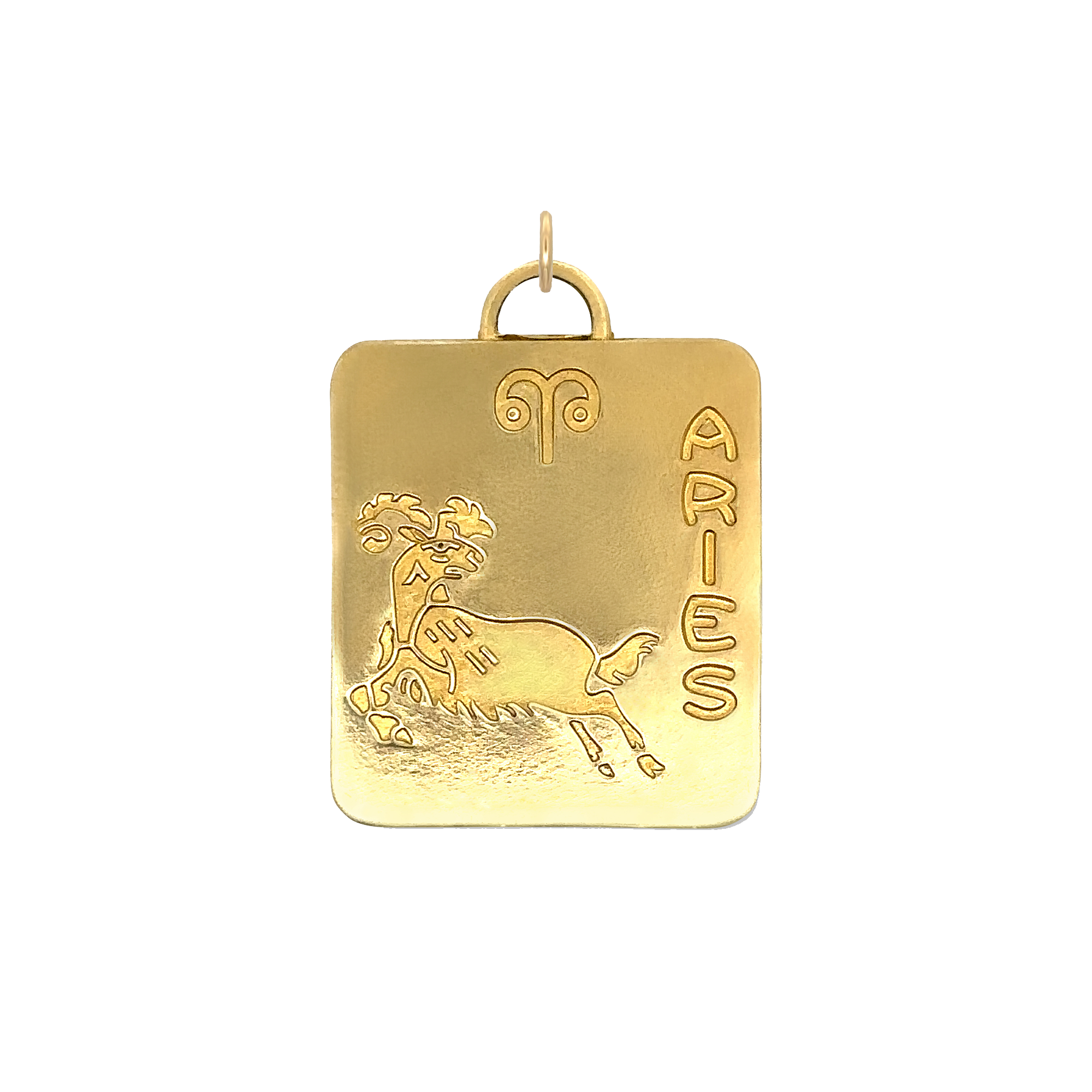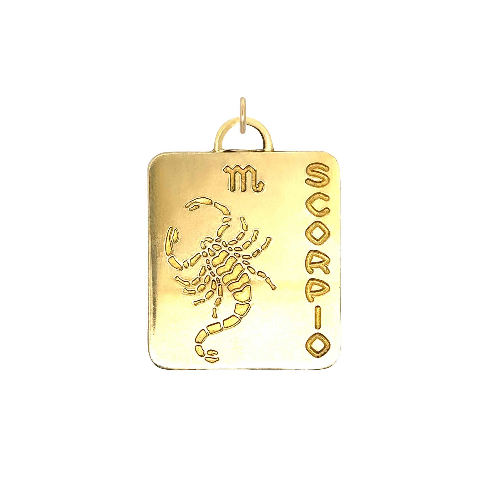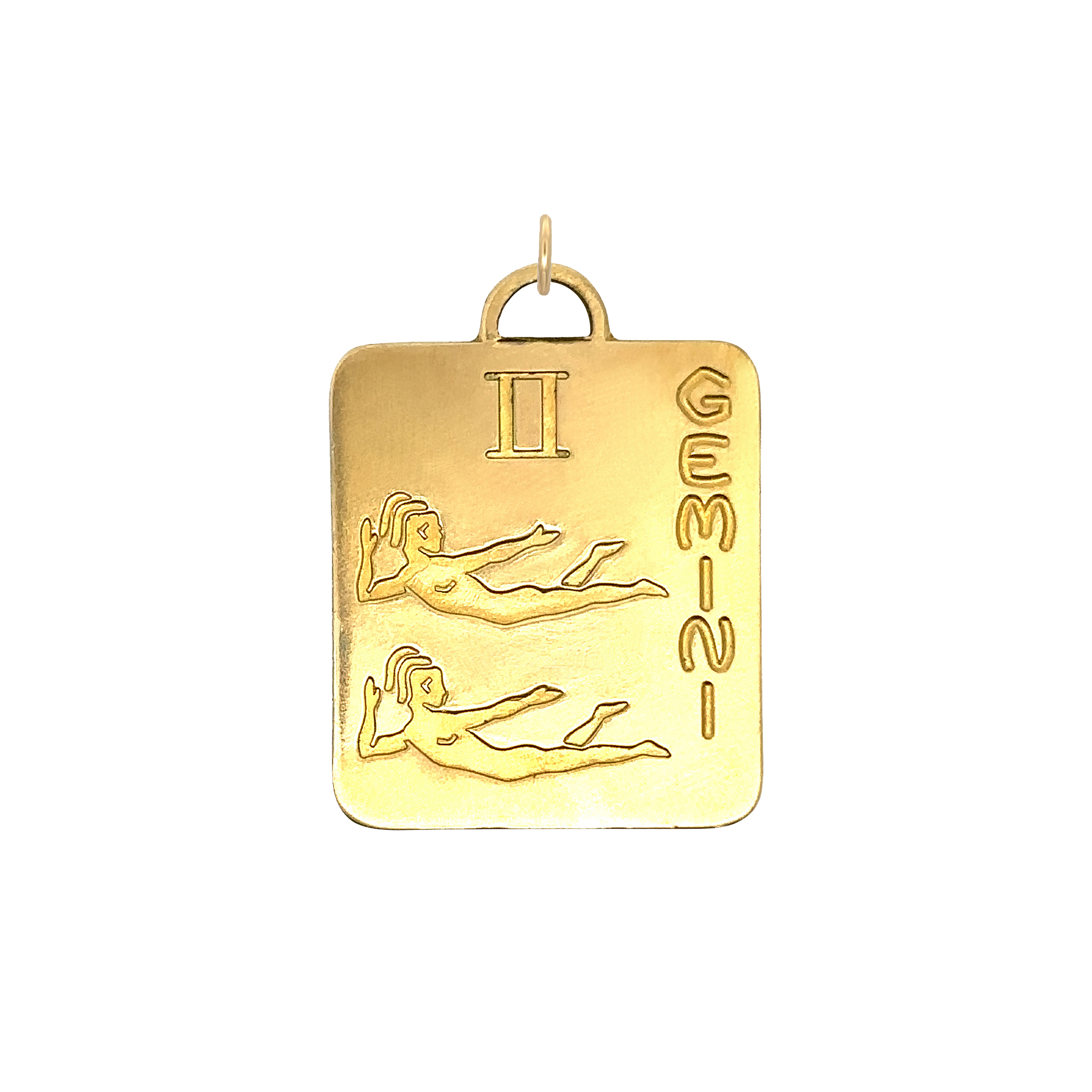 Vintage Brass Rectangular Zodiac Charm Necklace