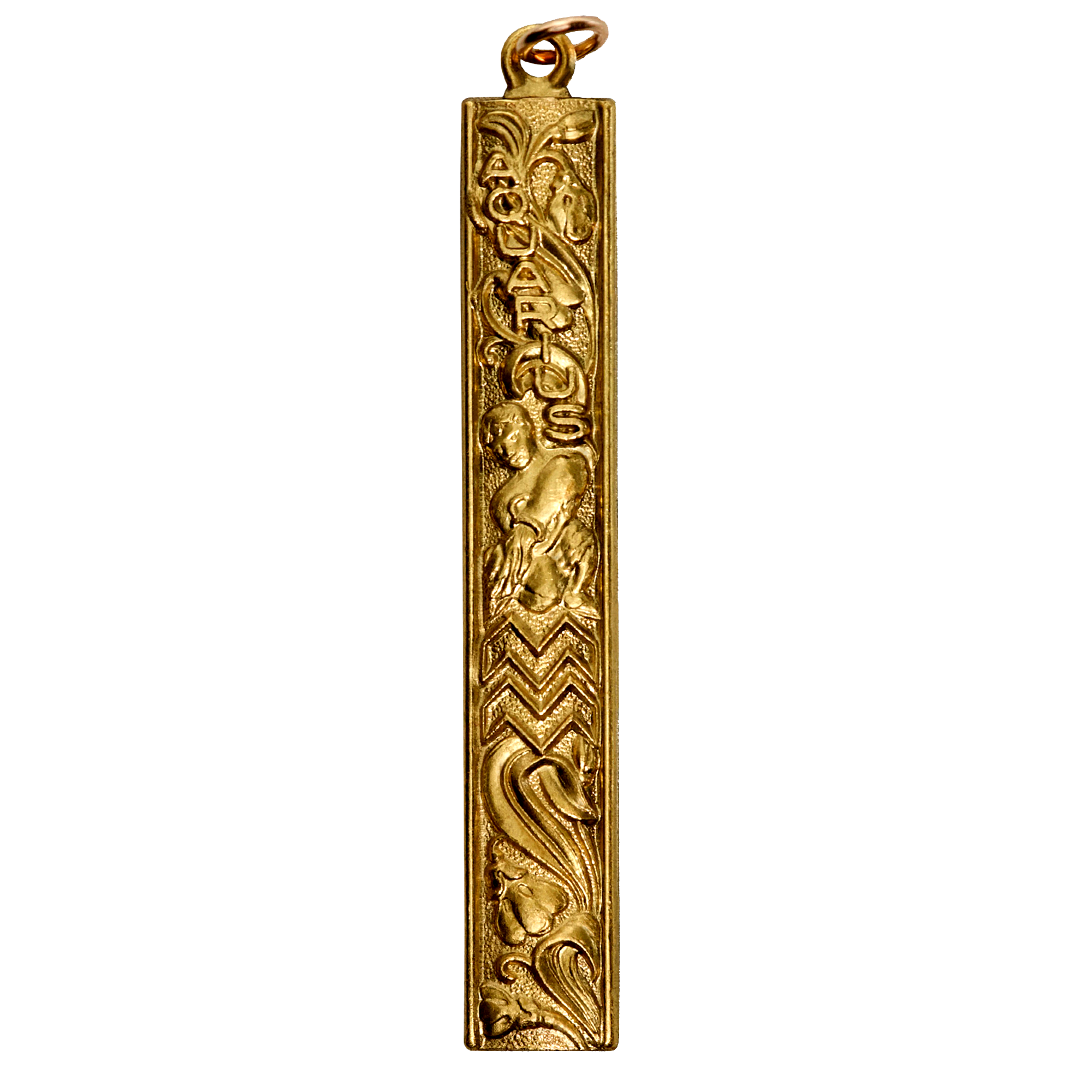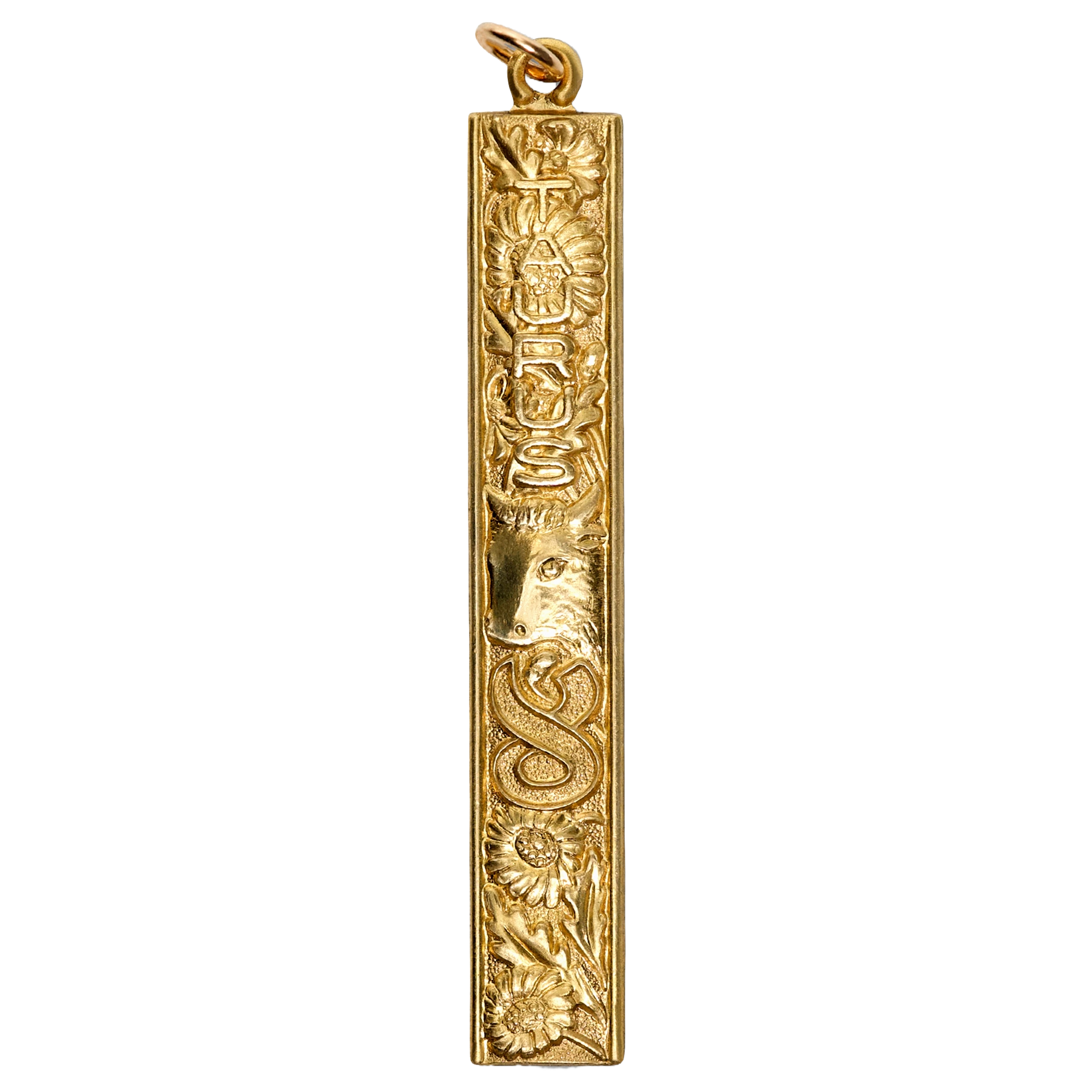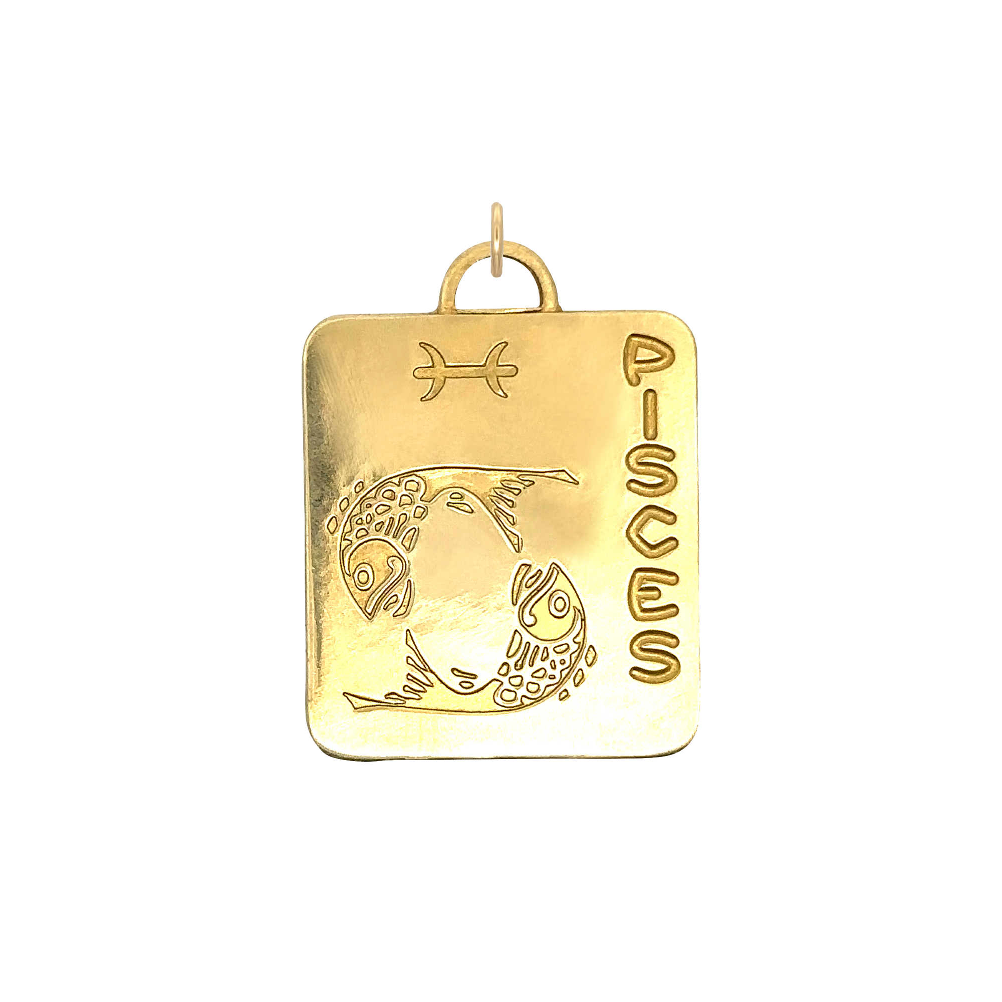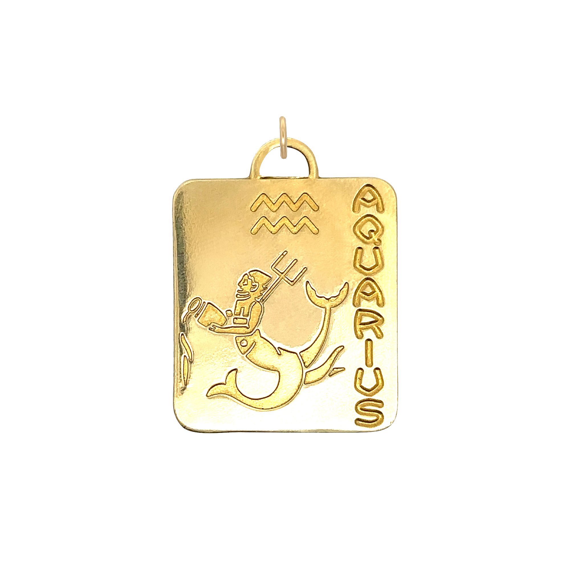 Vintage Brass Rectangular Zodiac Charm Necklace
