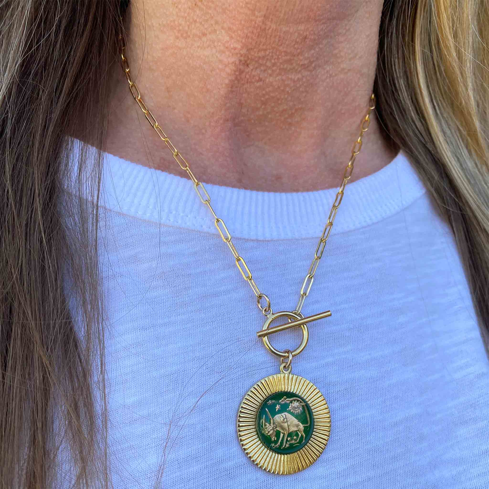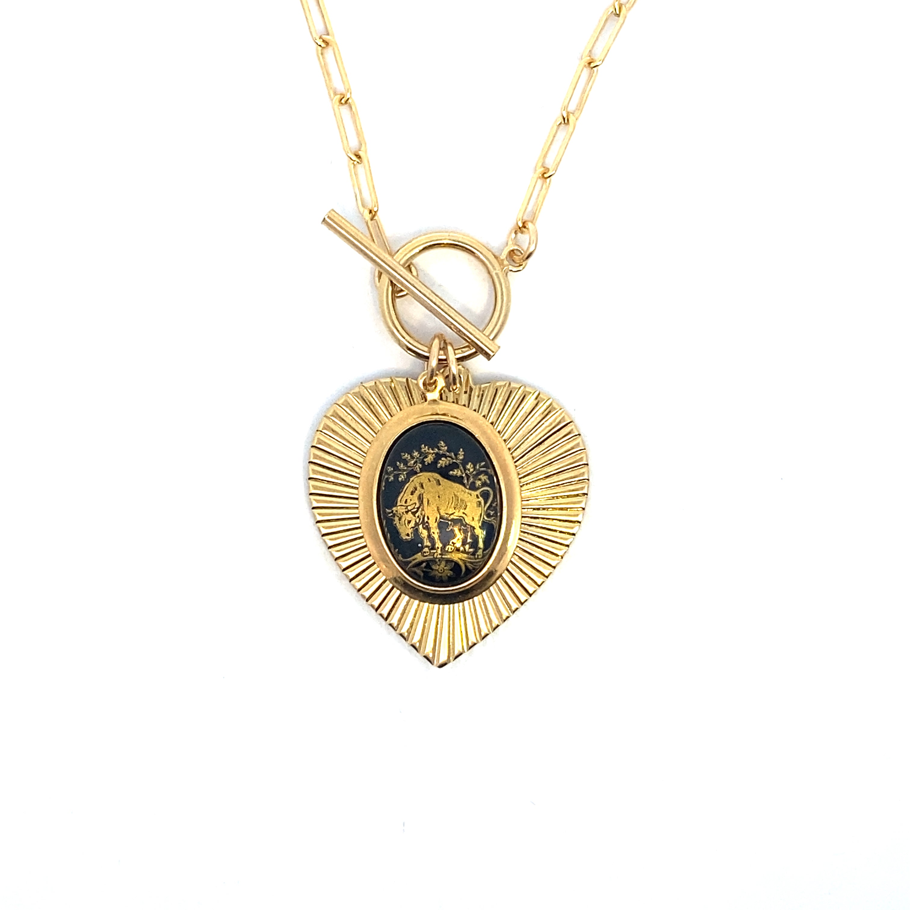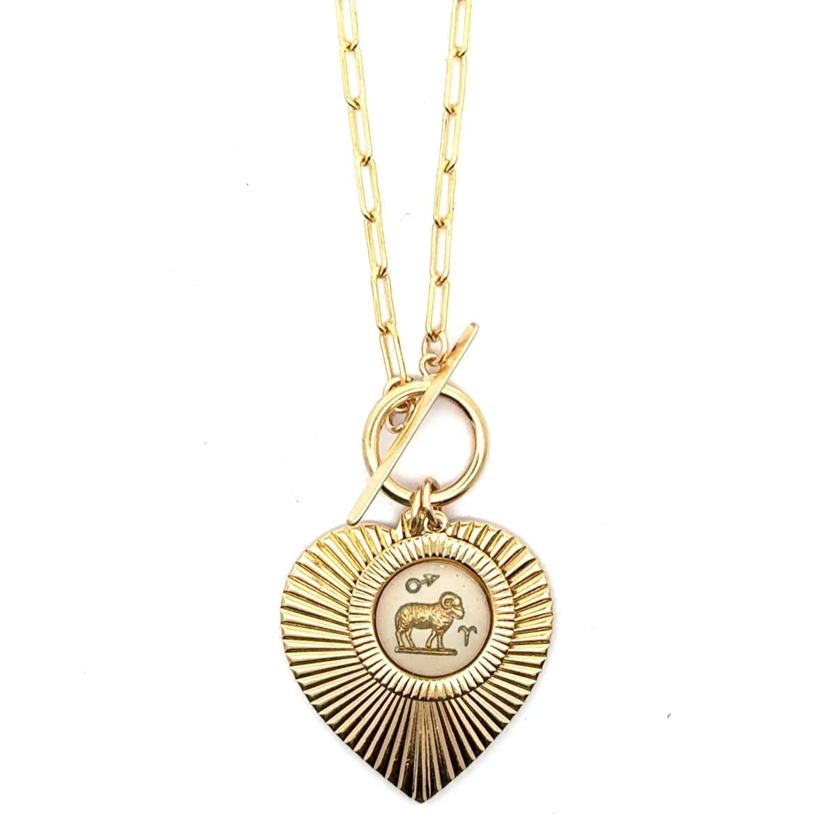 Ribbed Heart & Zodiac Toggle Necklace (Classic Color)