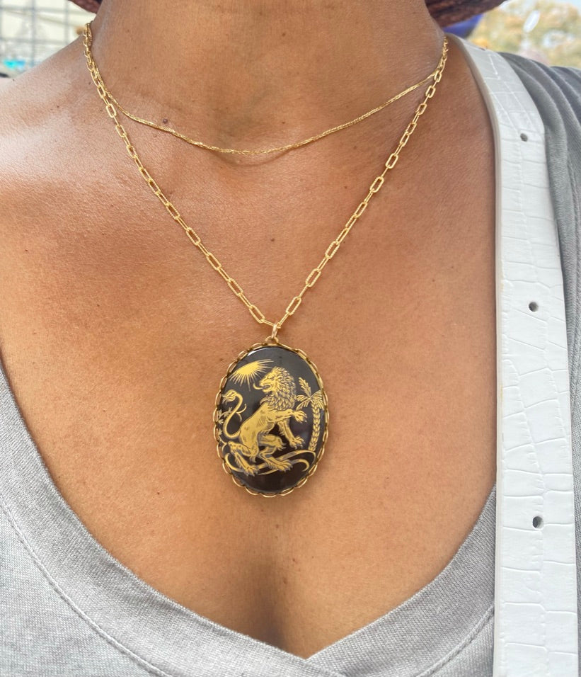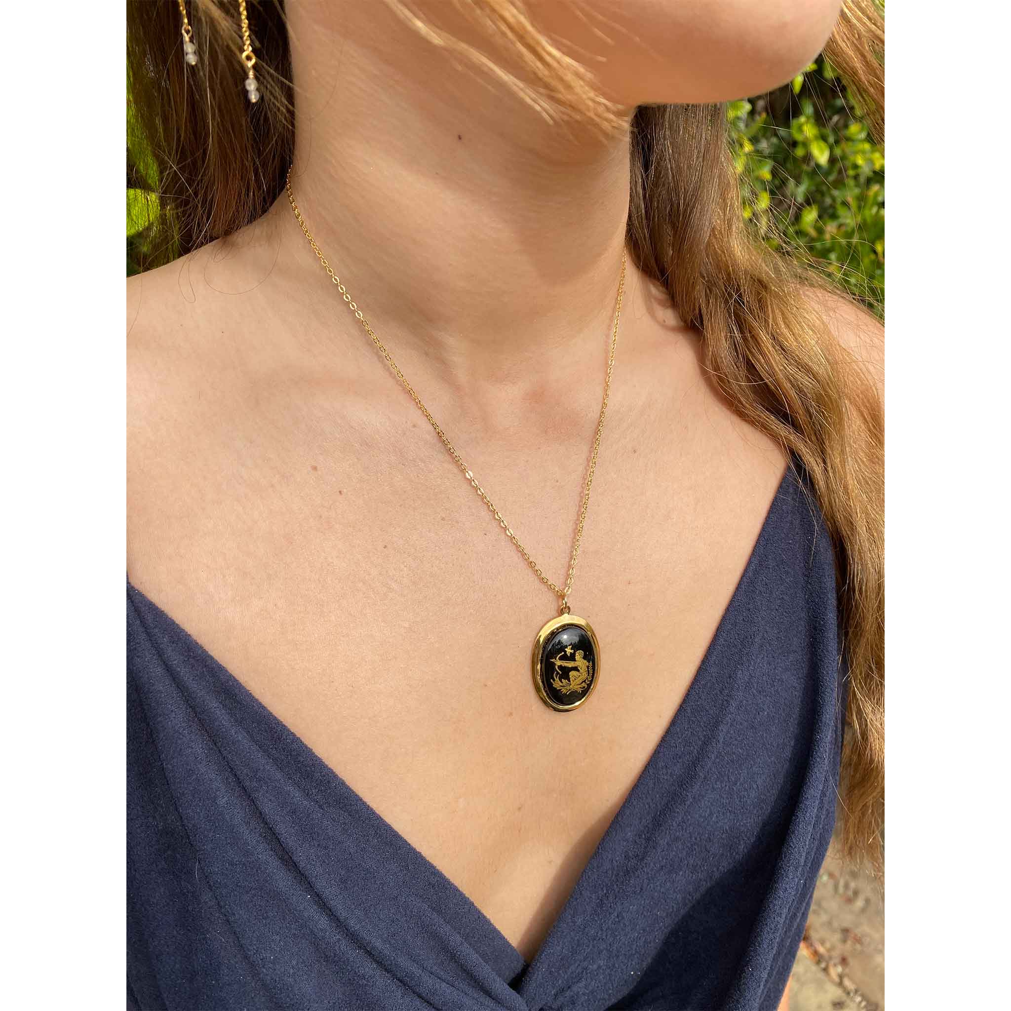 Vintage Black/Gold Large Decal Zodiac Necklace (as seen on Netflix)