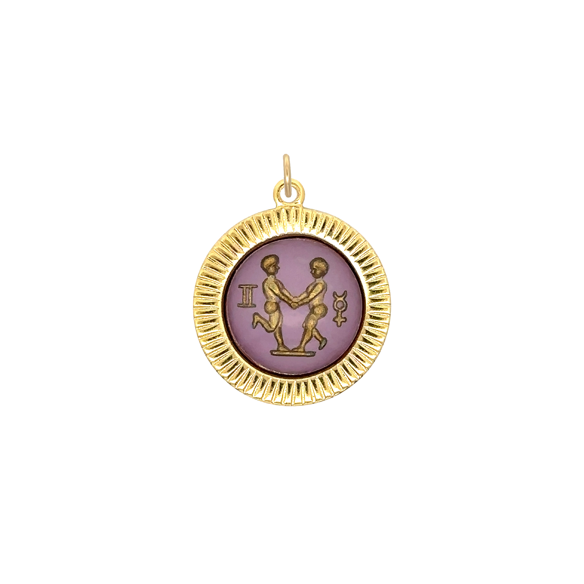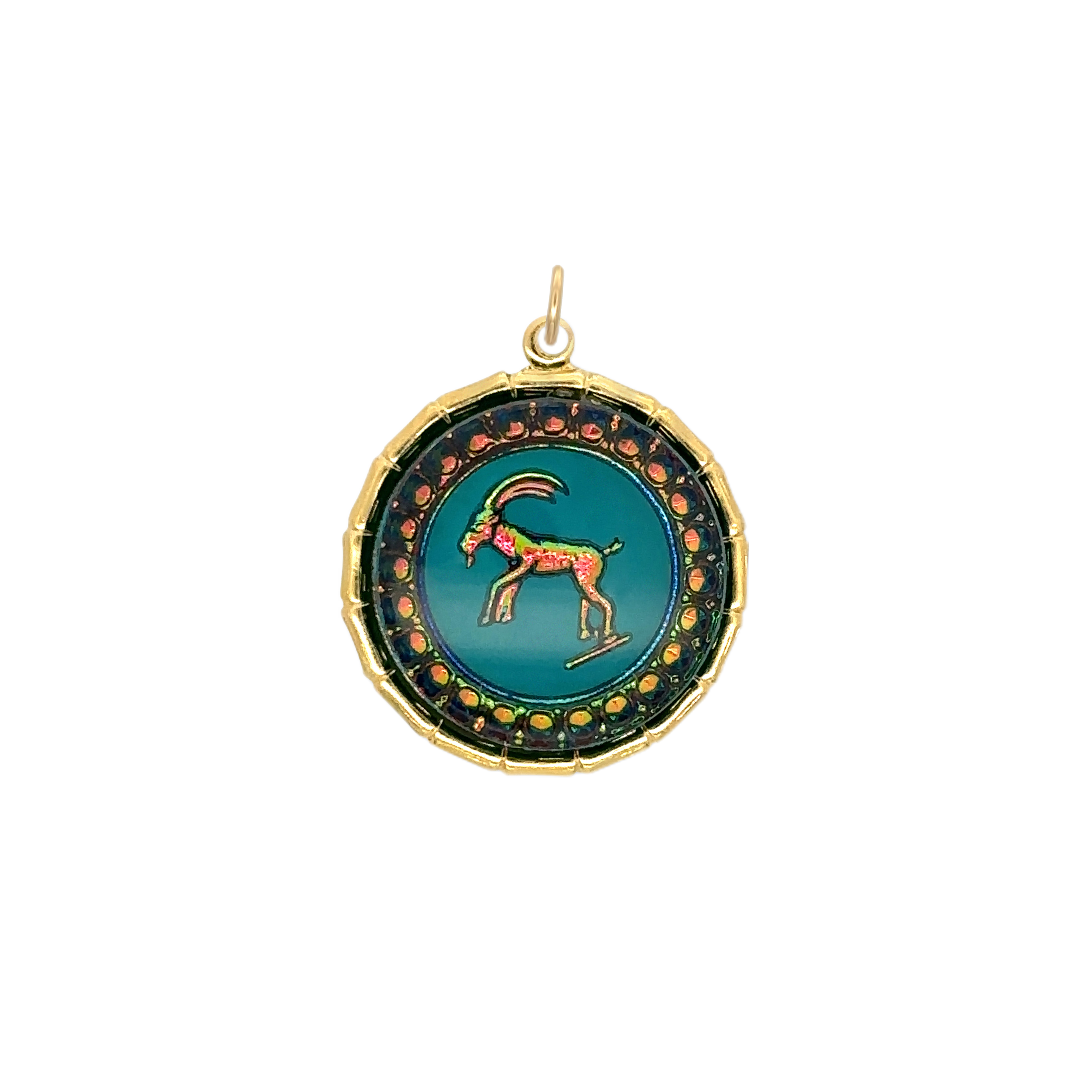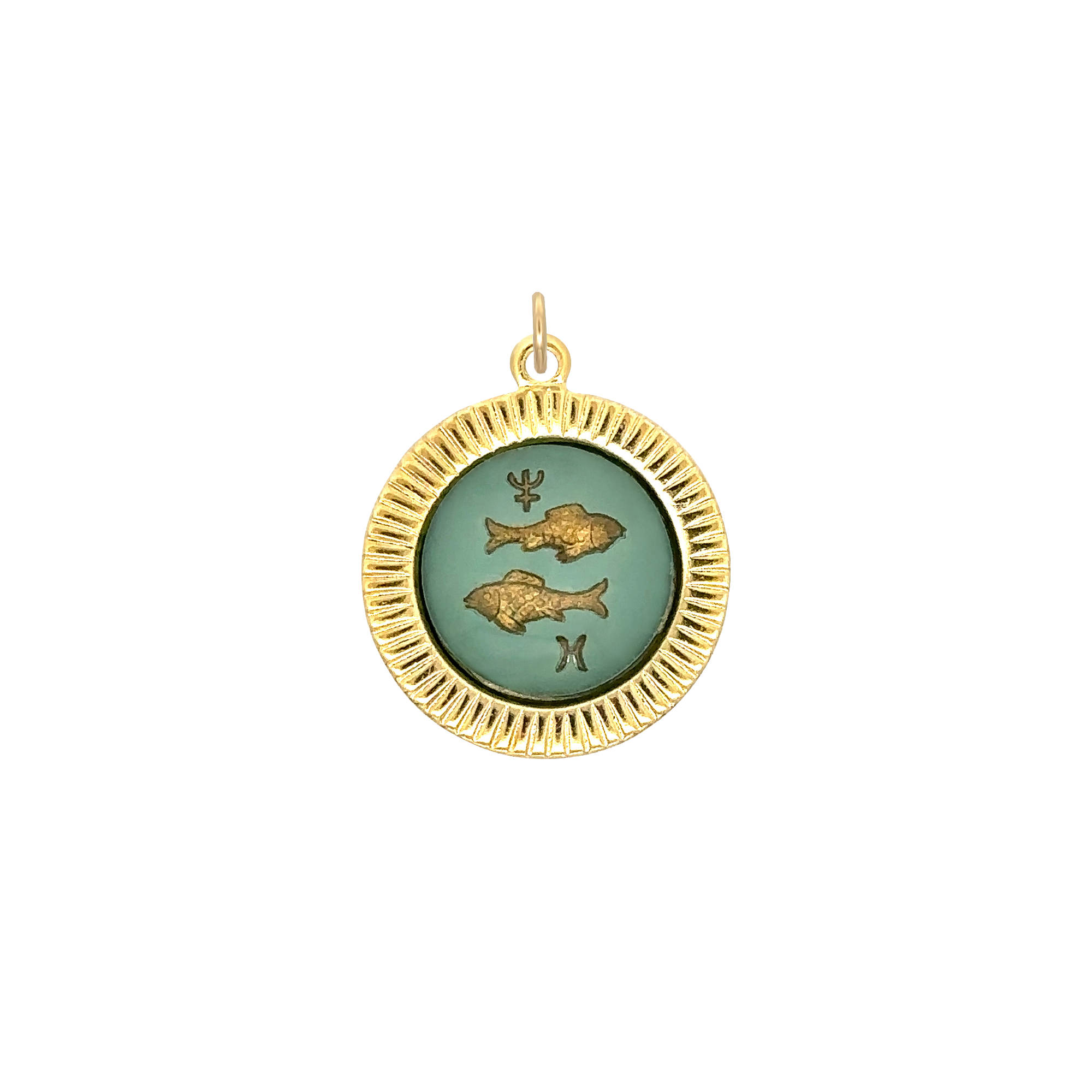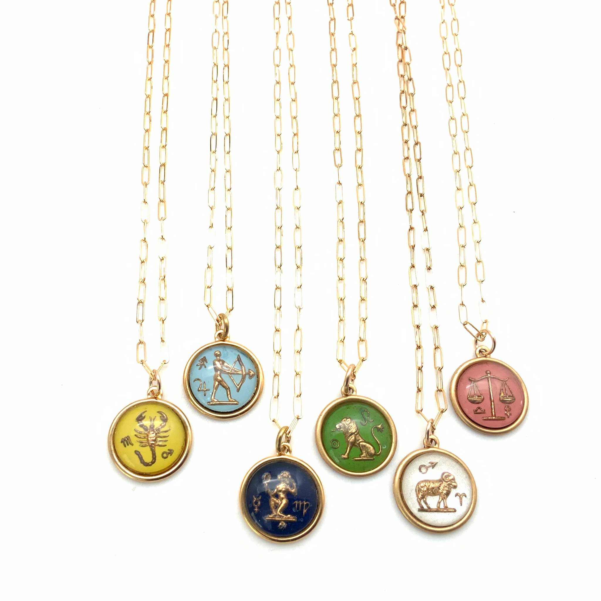 Vintage Glass Zodiac Sign Charm Necklace - Small