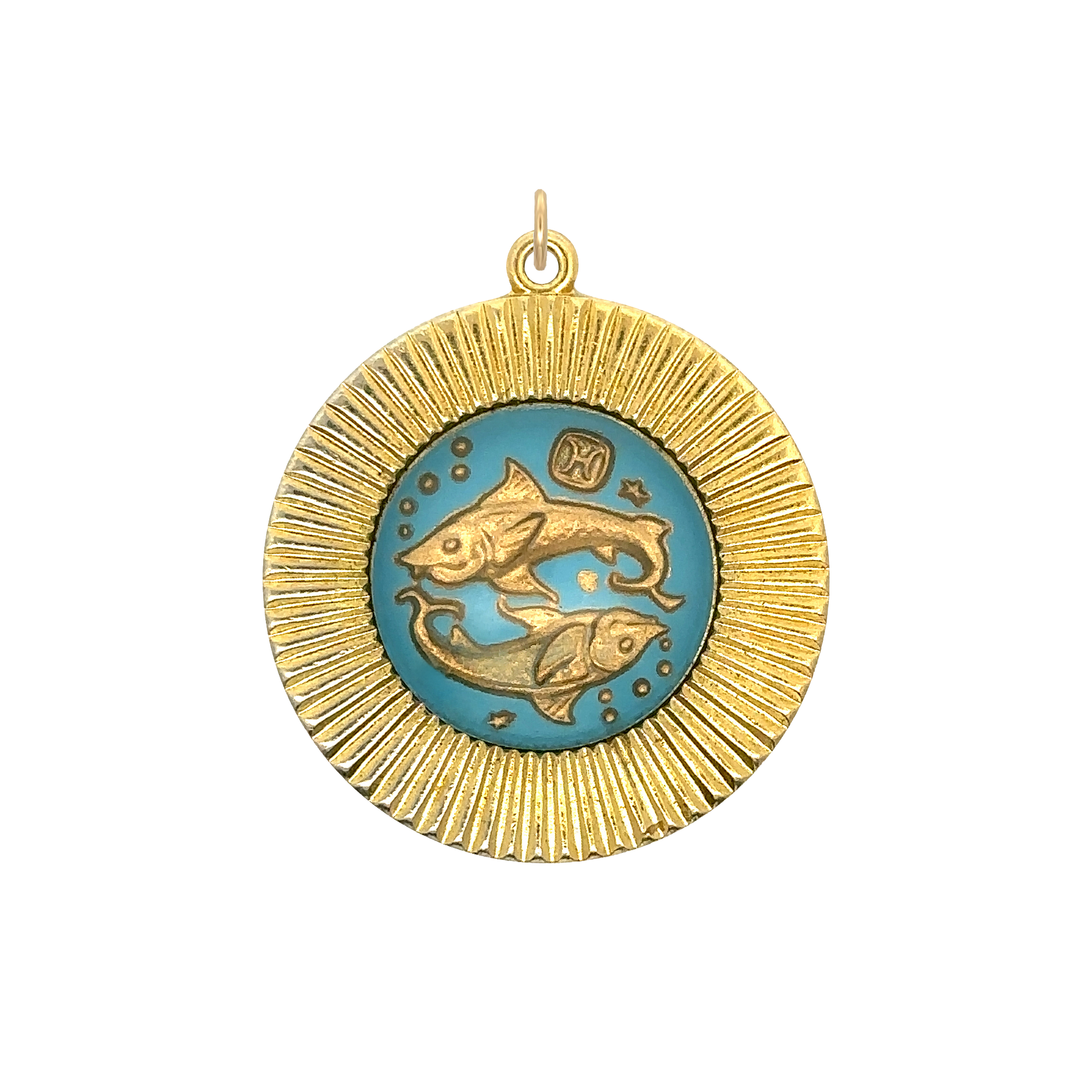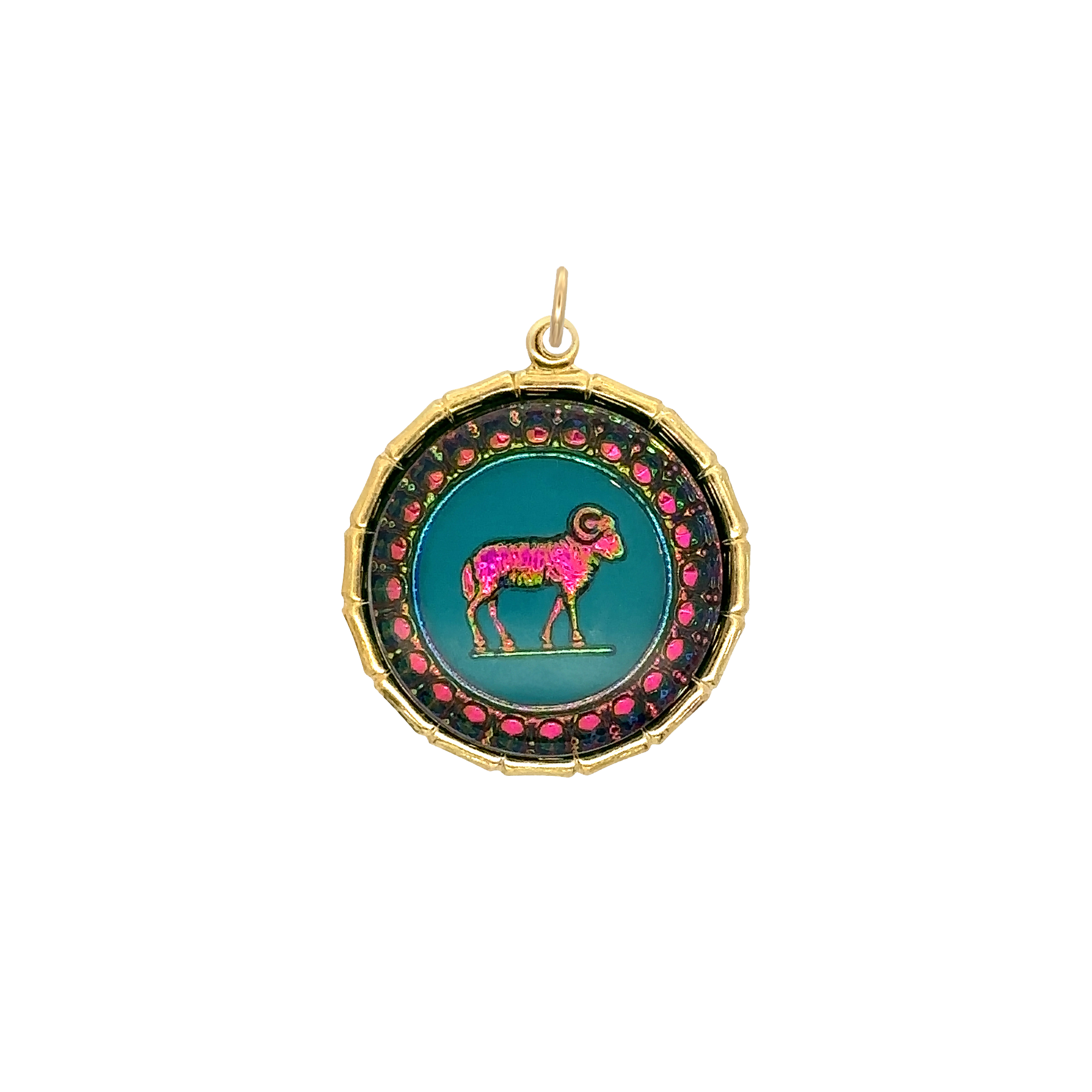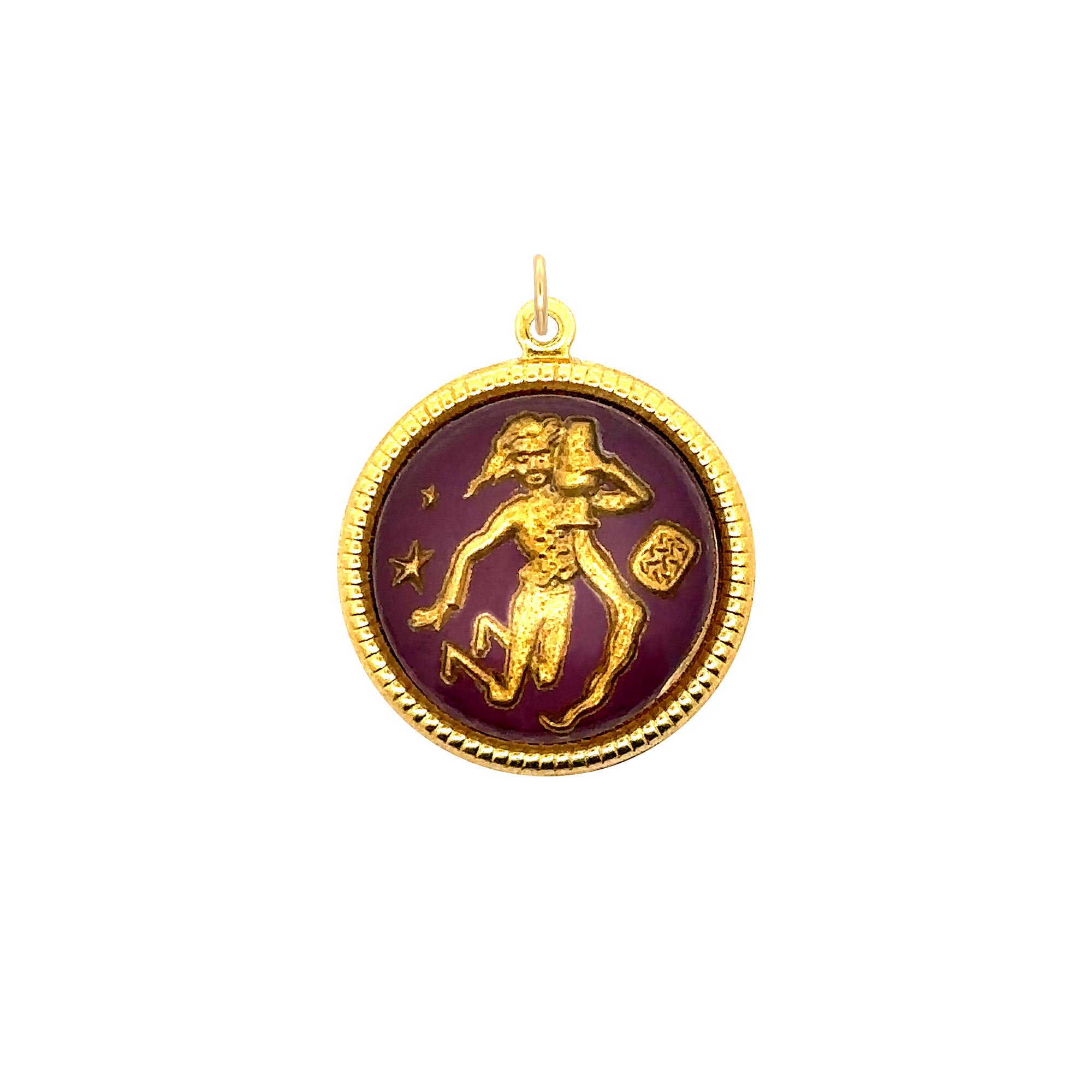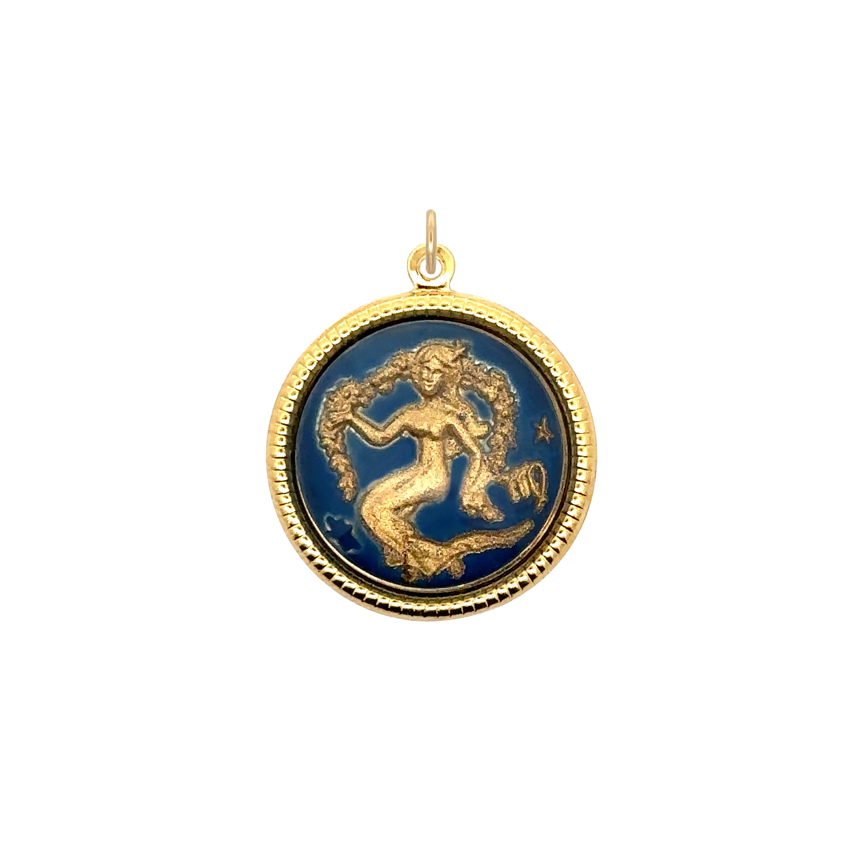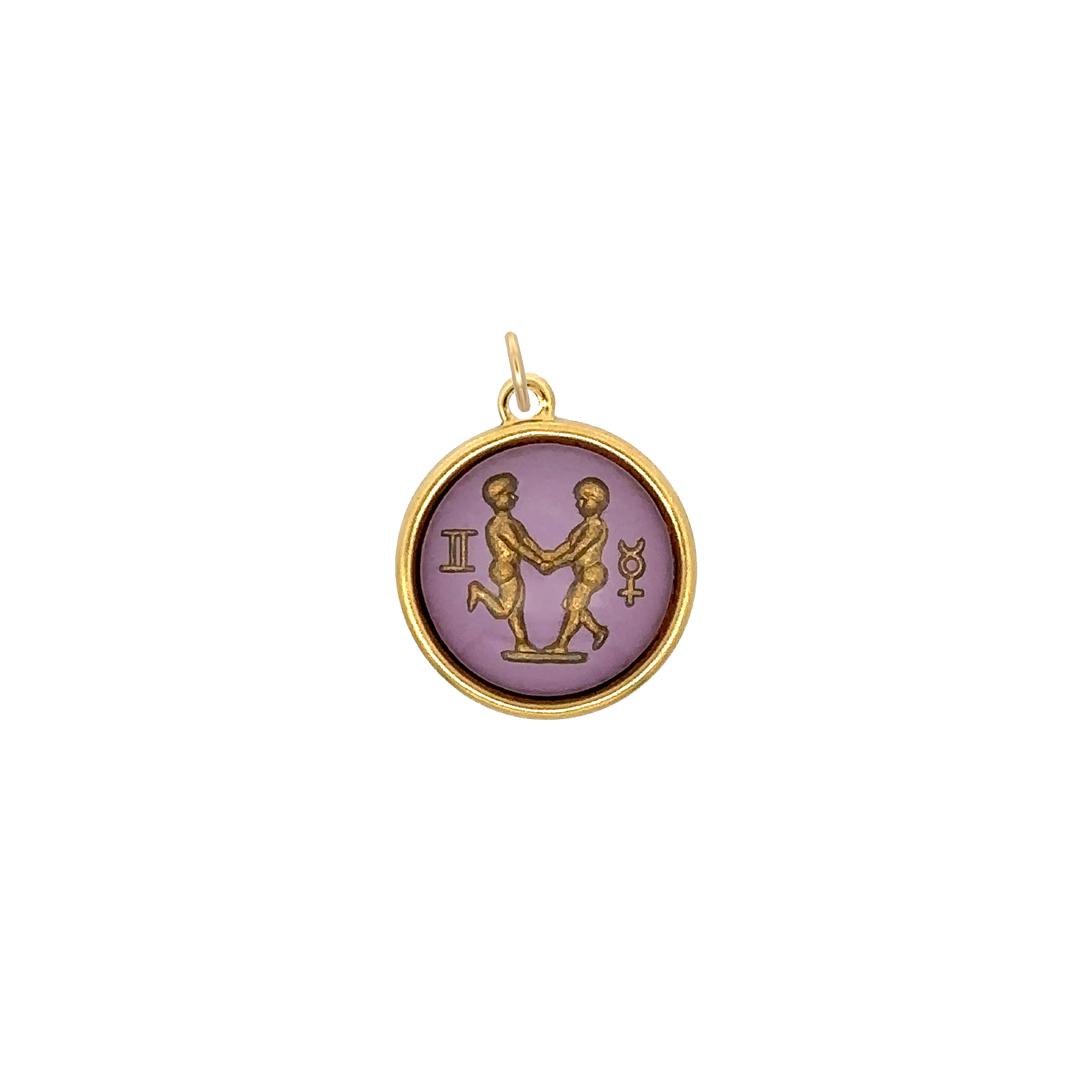 Vintage Glass Zodiac Sign Charm Necklace - Small