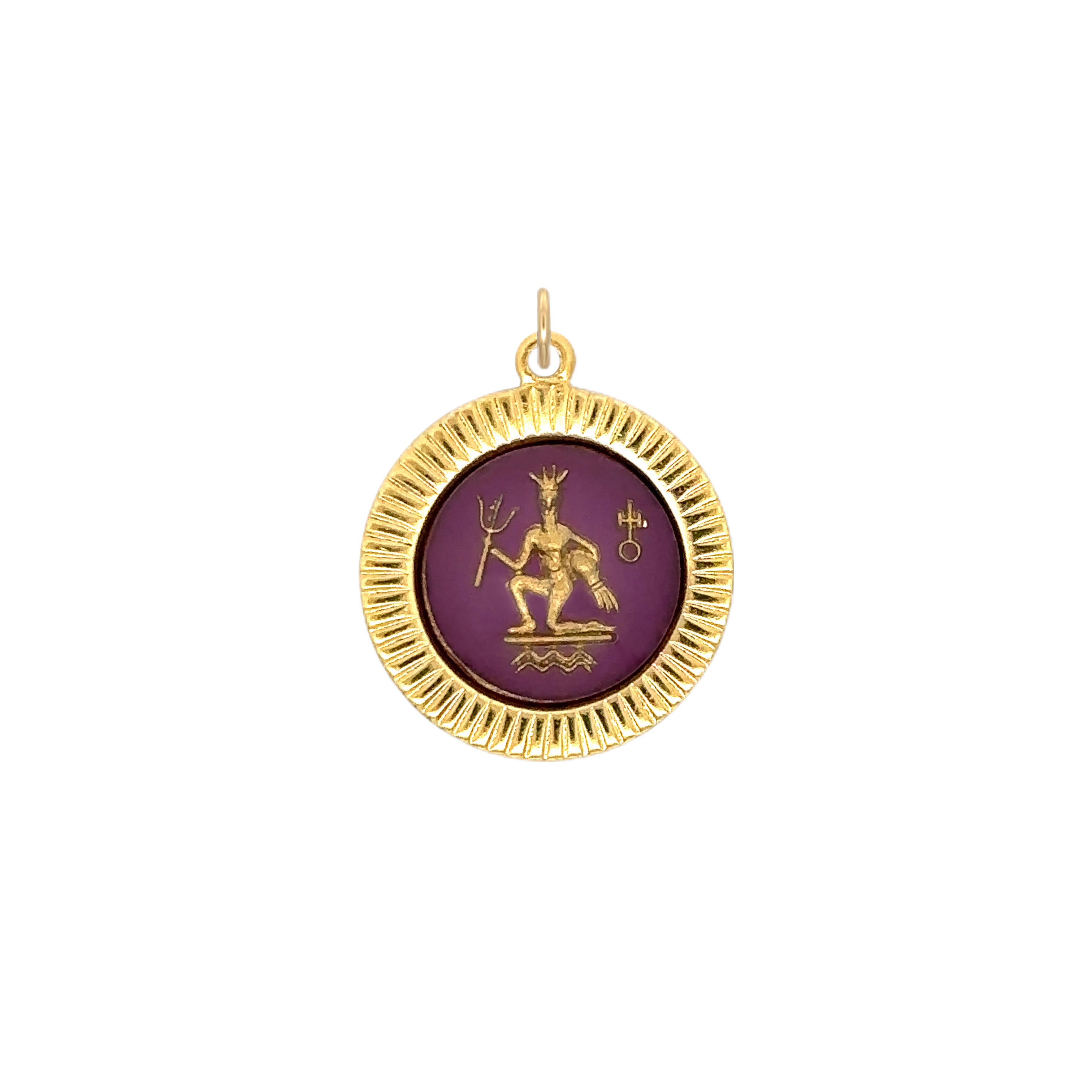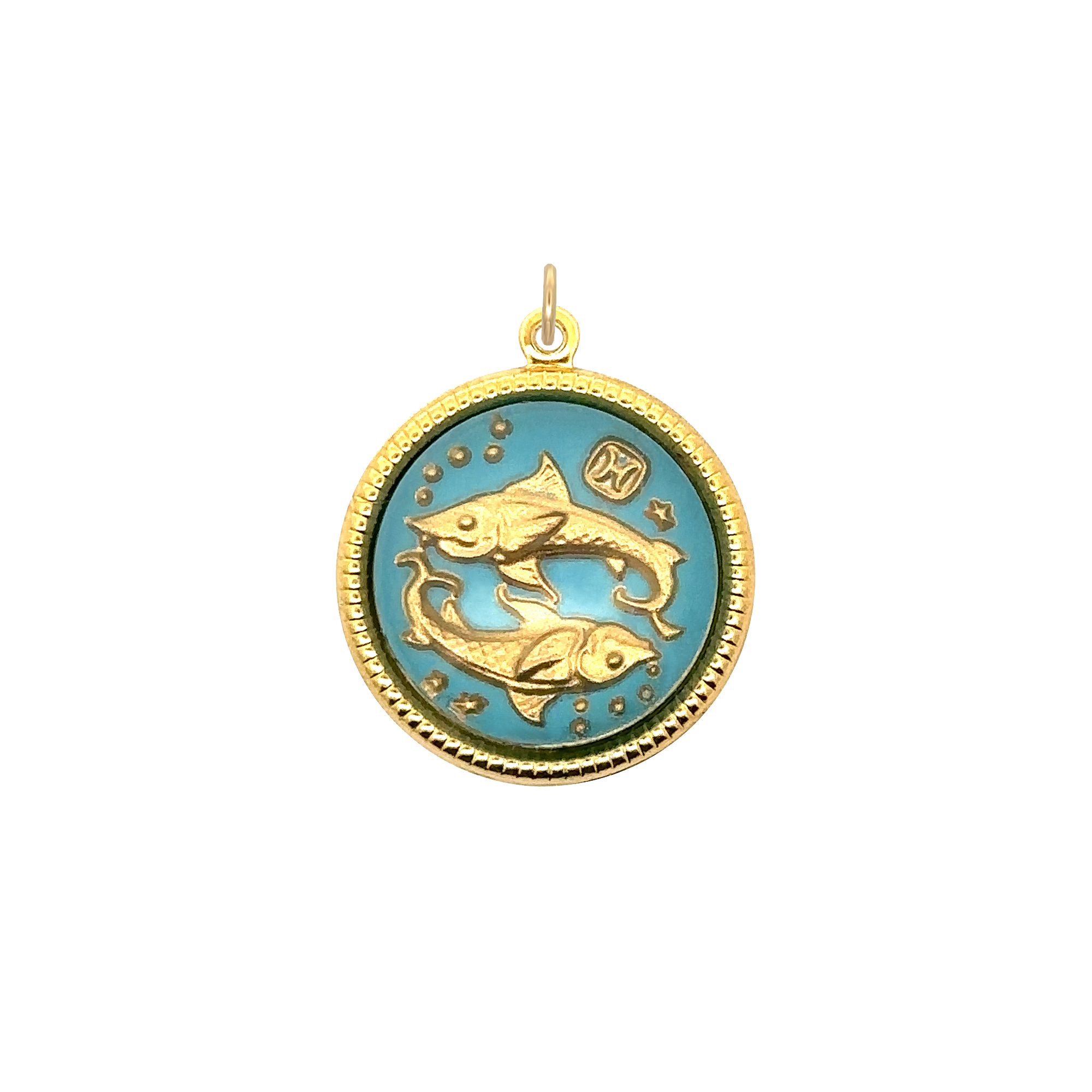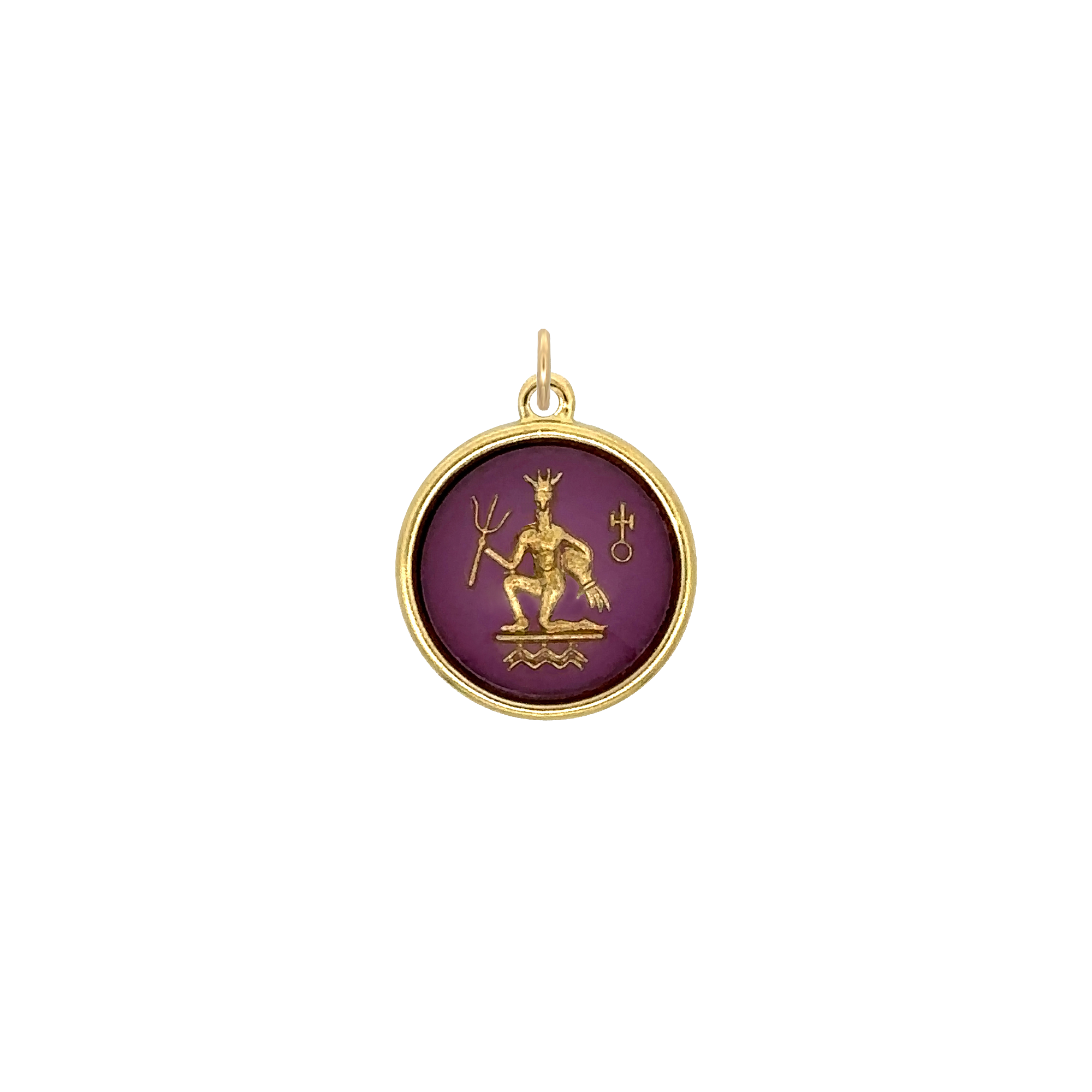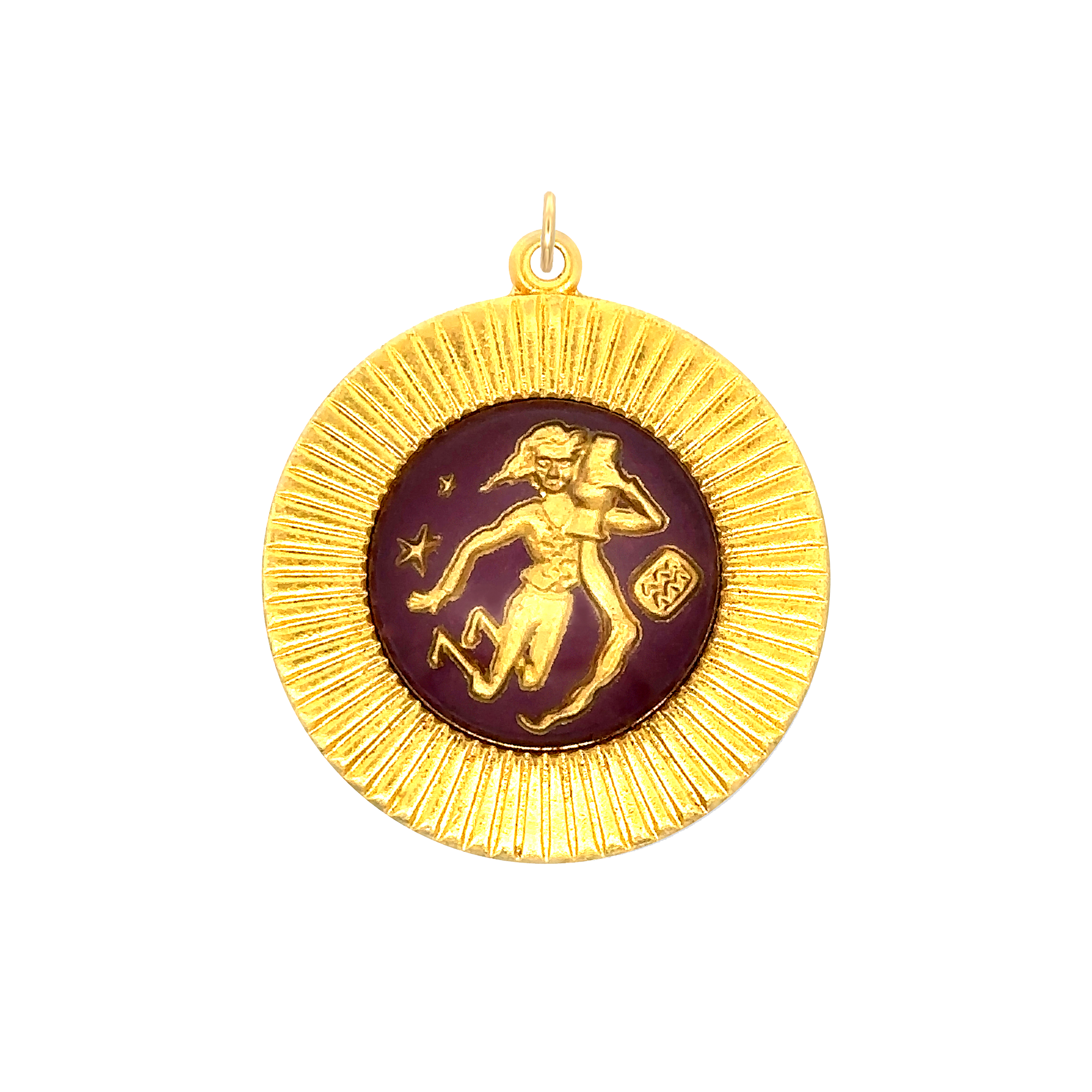 Vintage Glass Zodiac Sign Charm Necklace - Small
