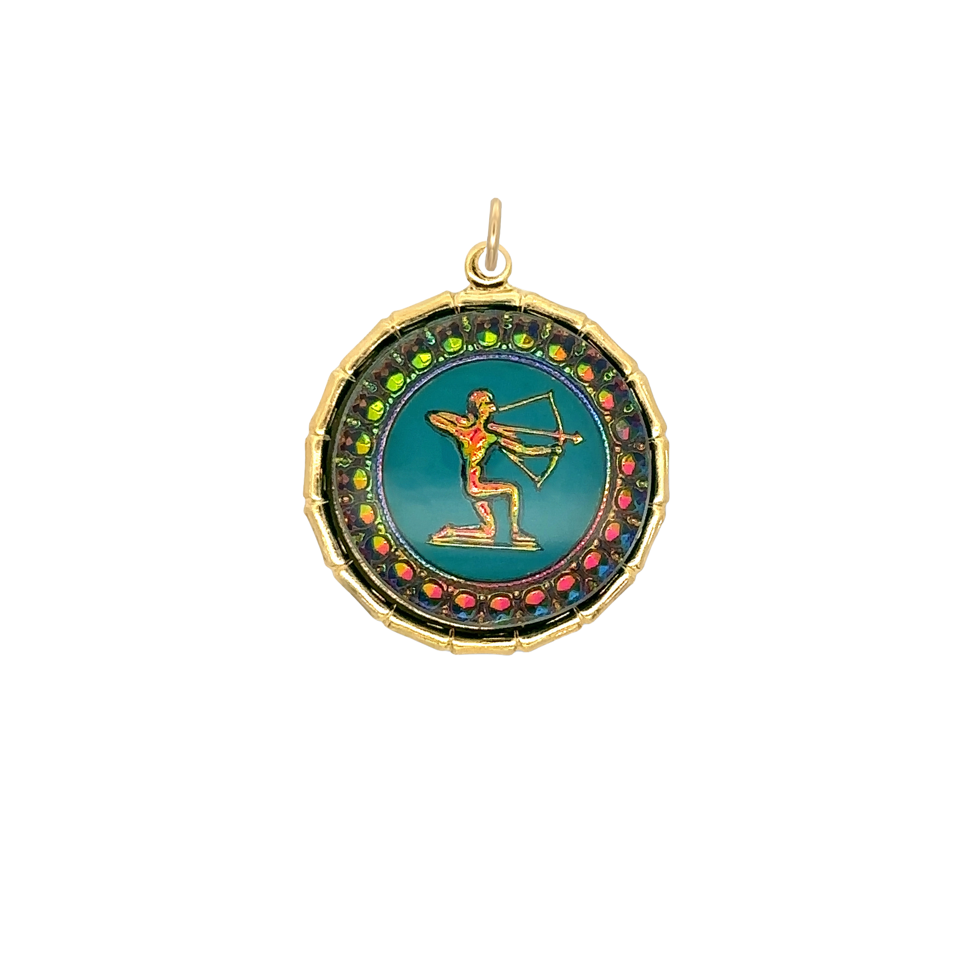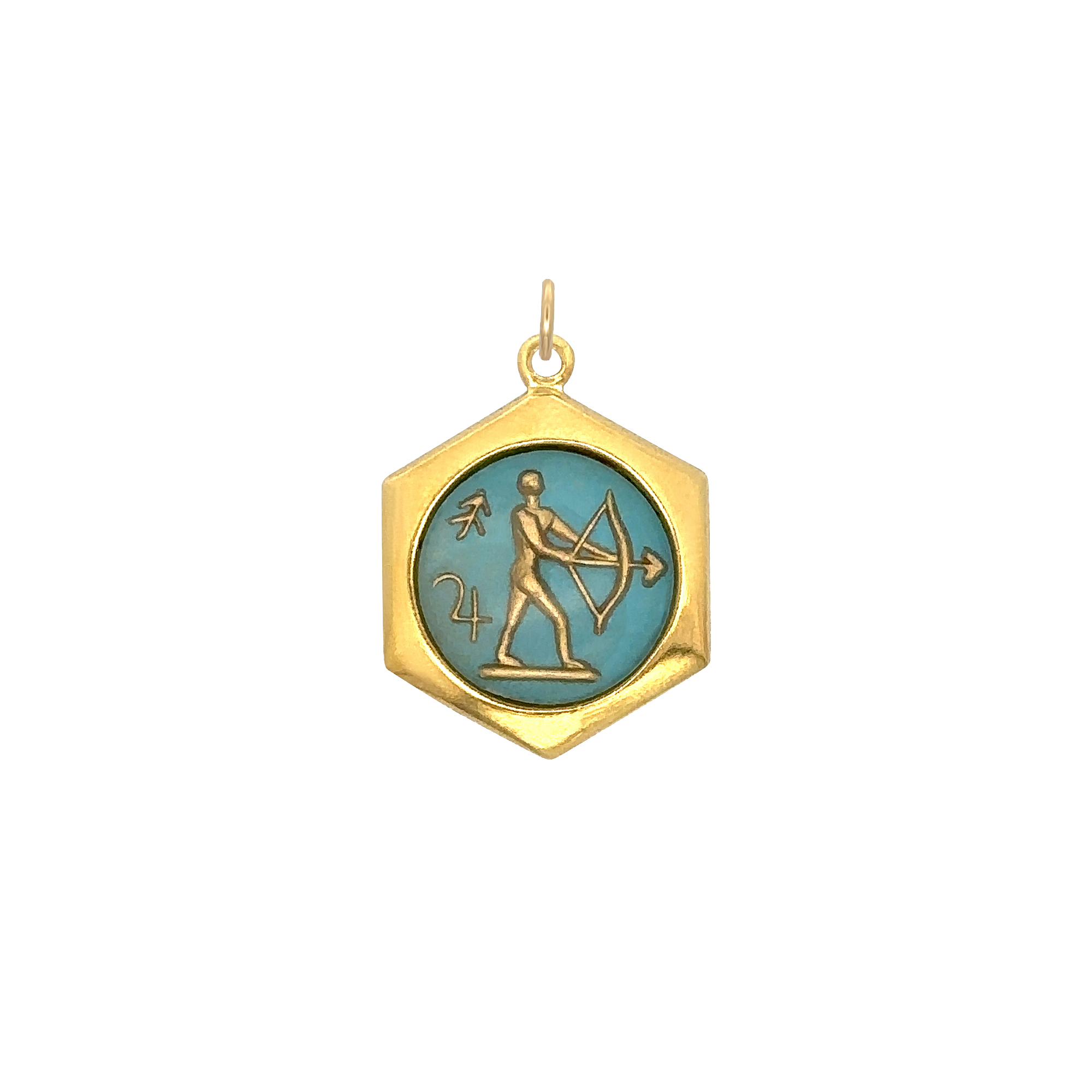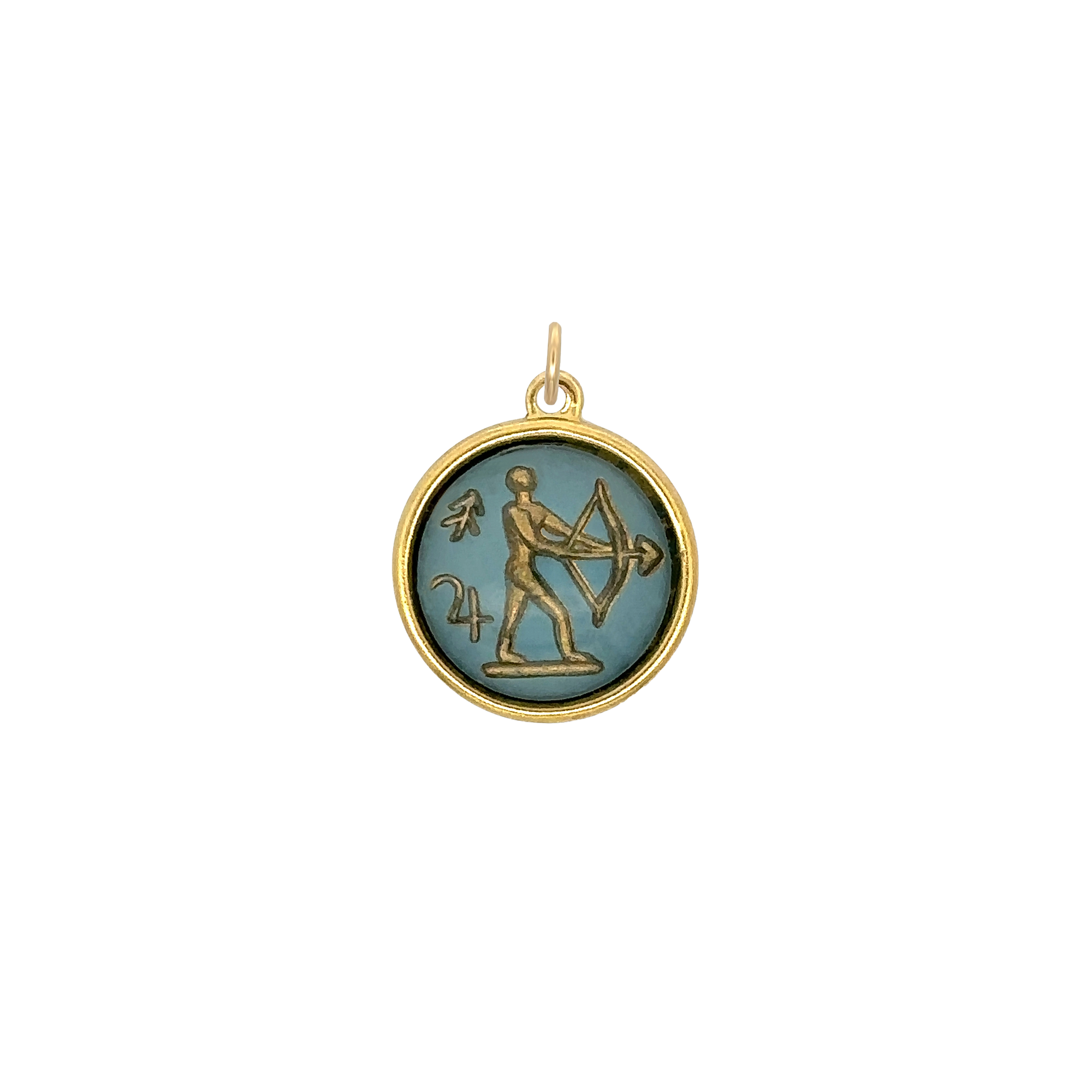 Sagittarius Vintage Glass Charm Small Hexagonal