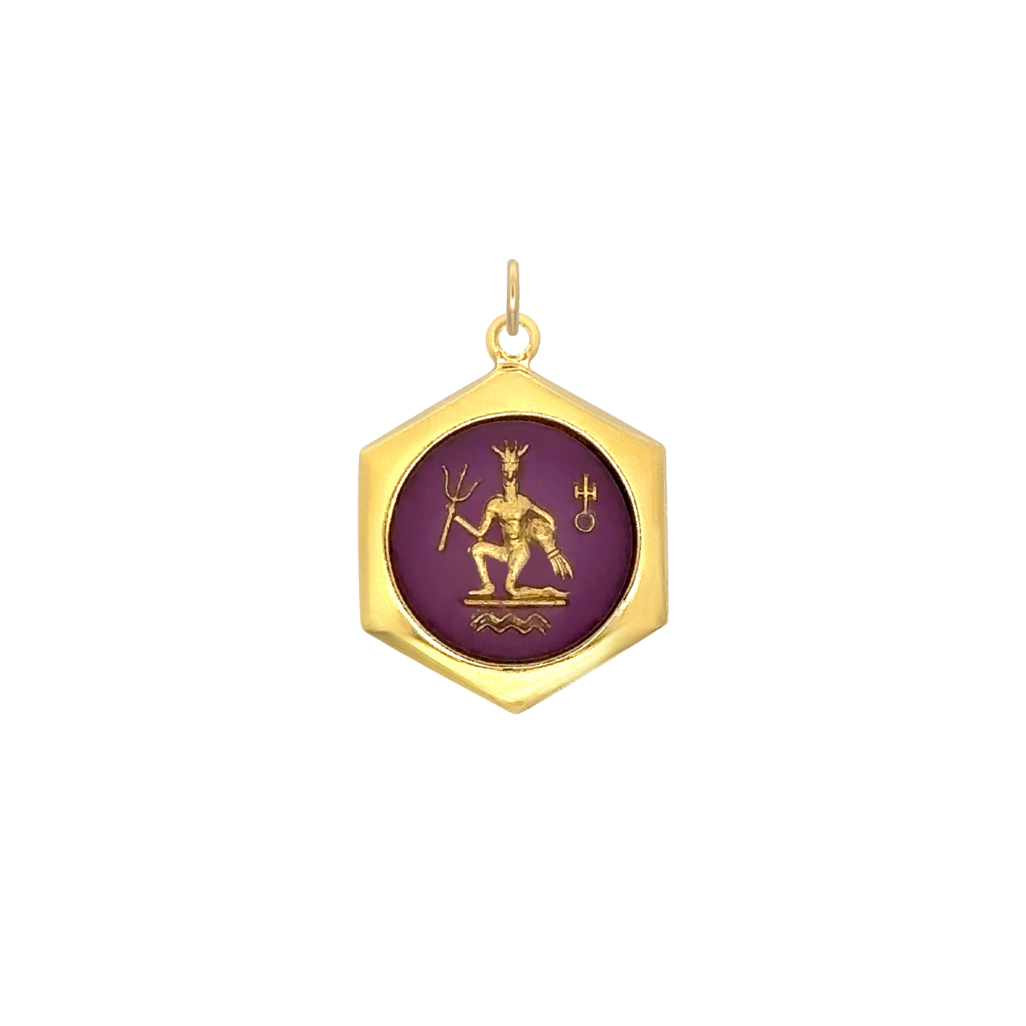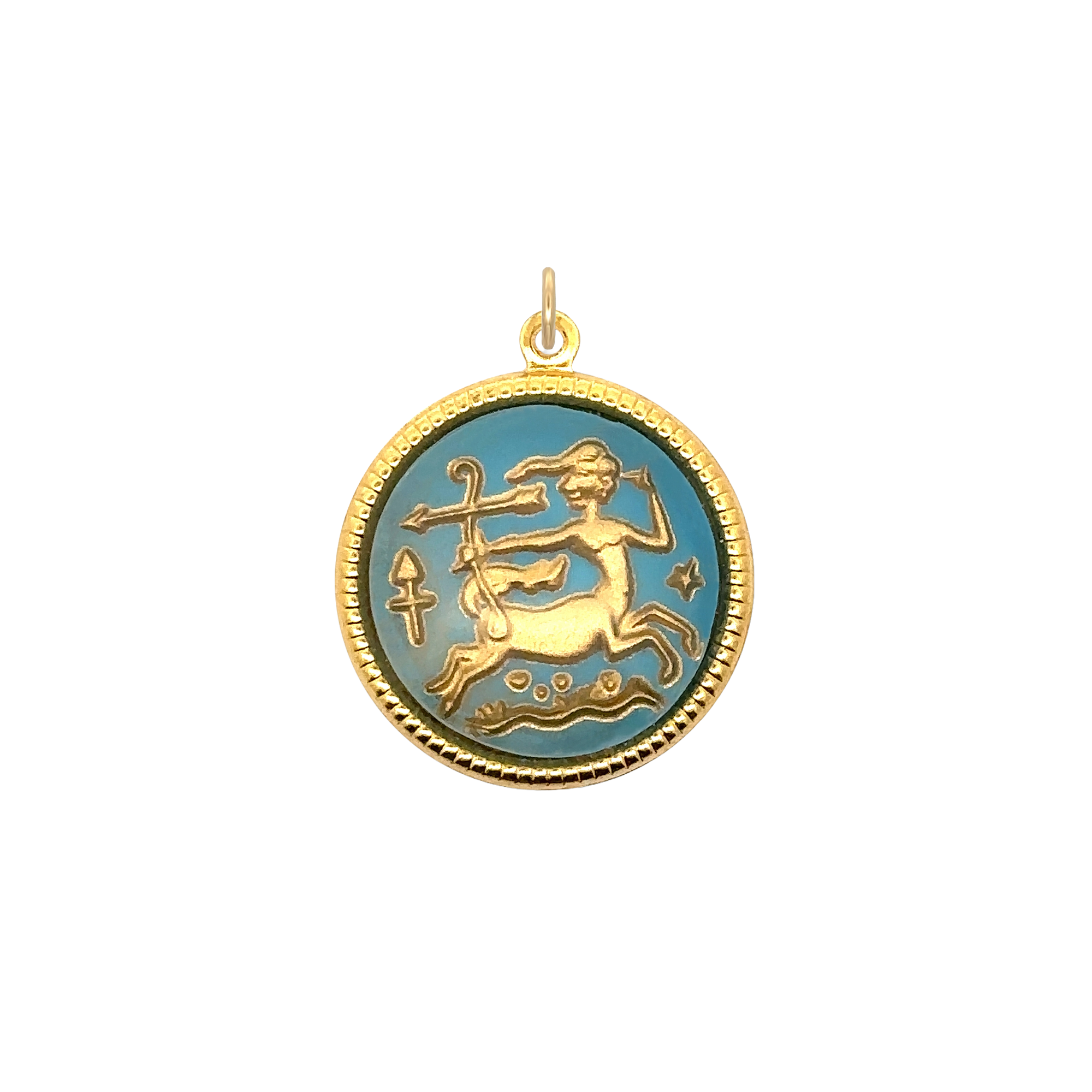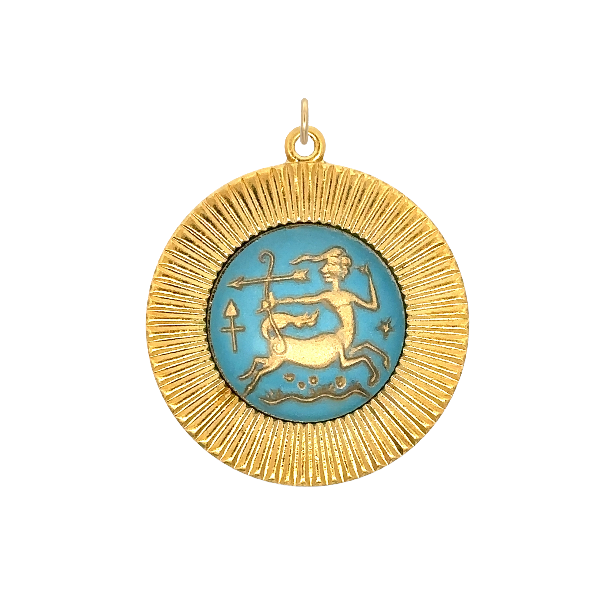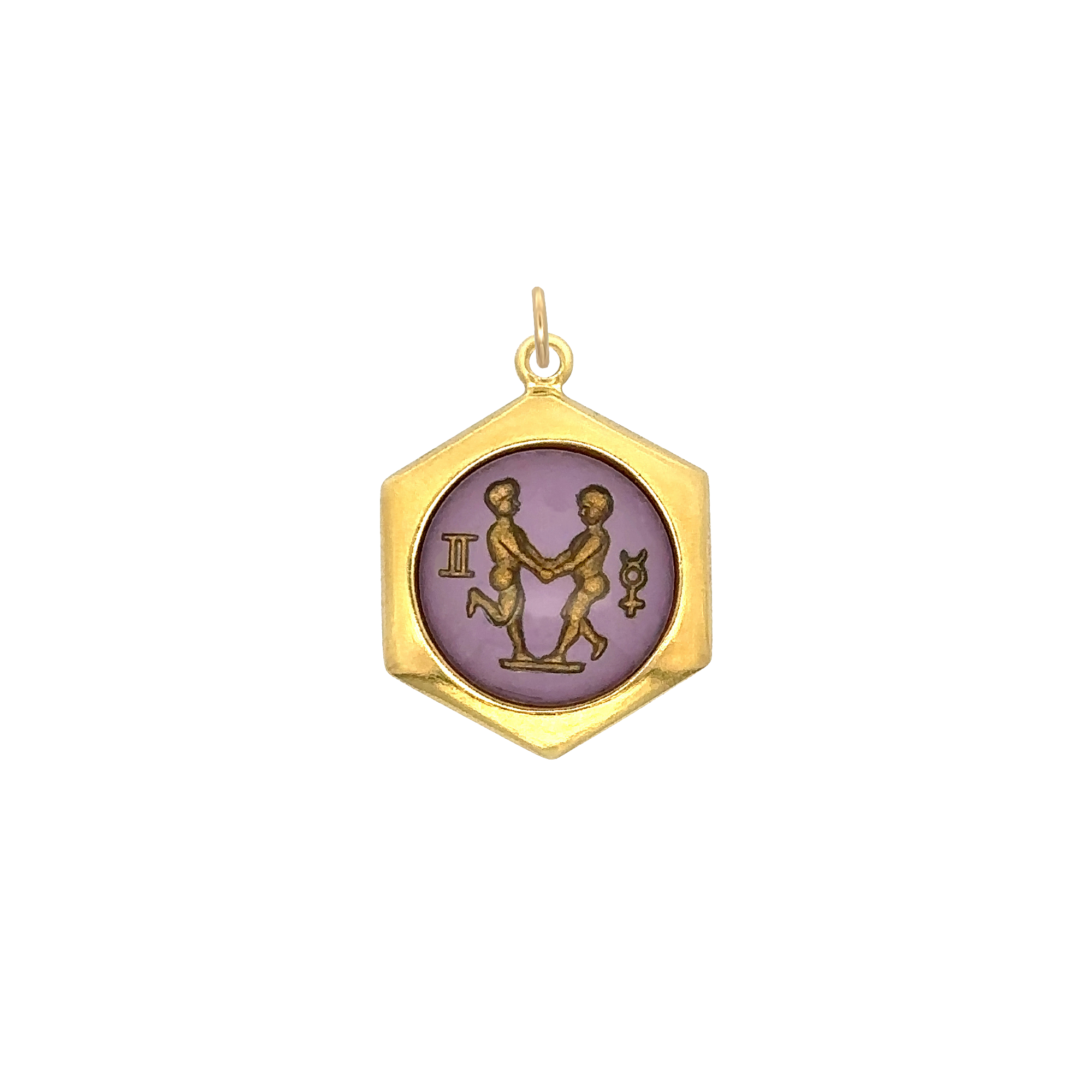 Sagittarius Vintage Glass Charm Small Hexagonal