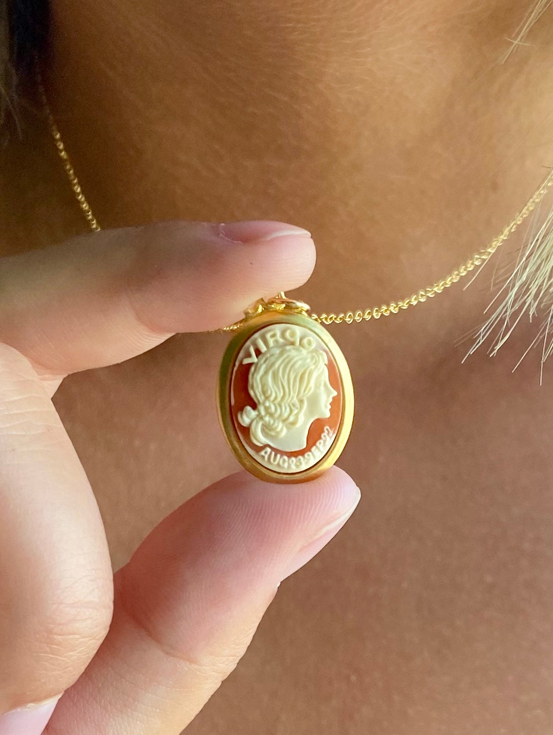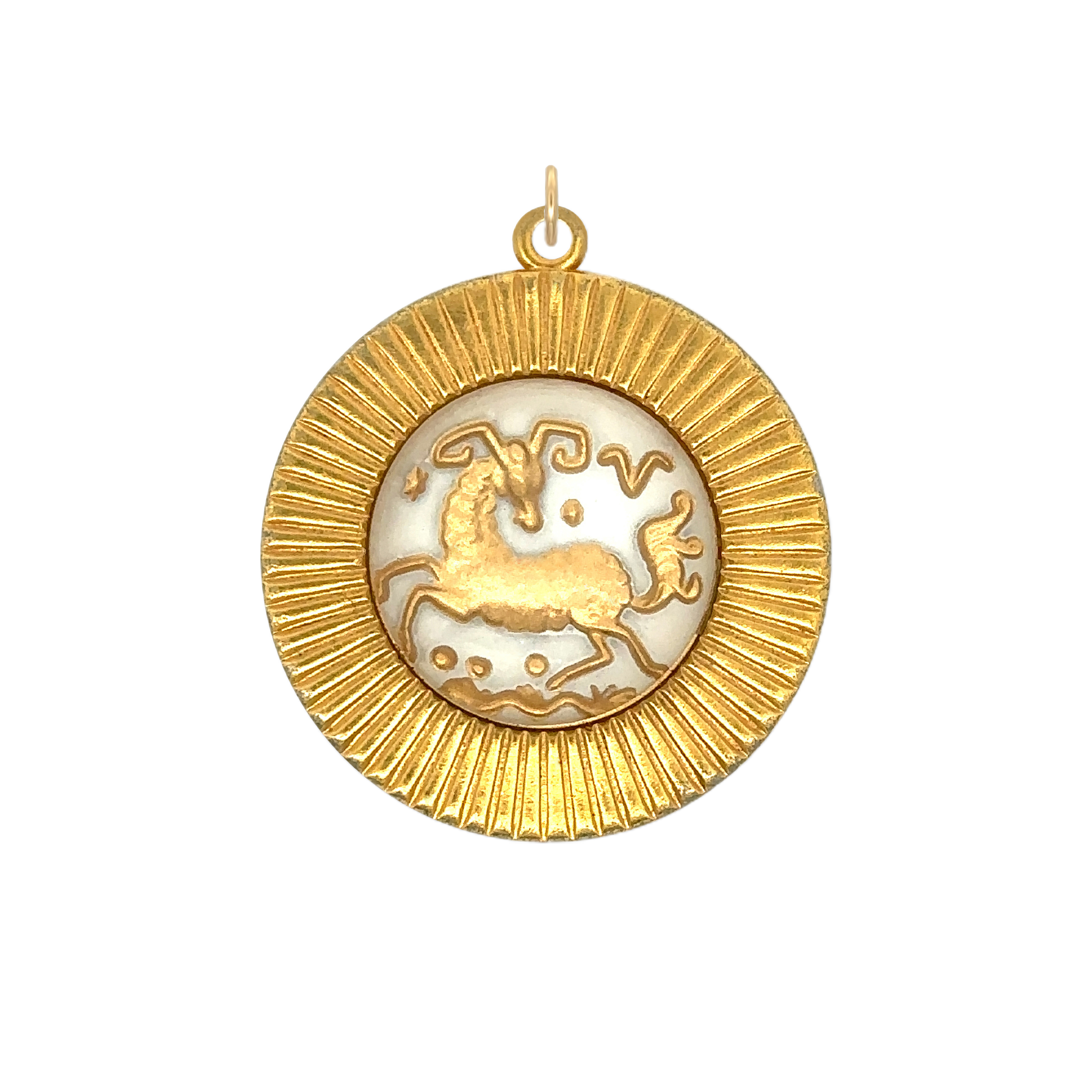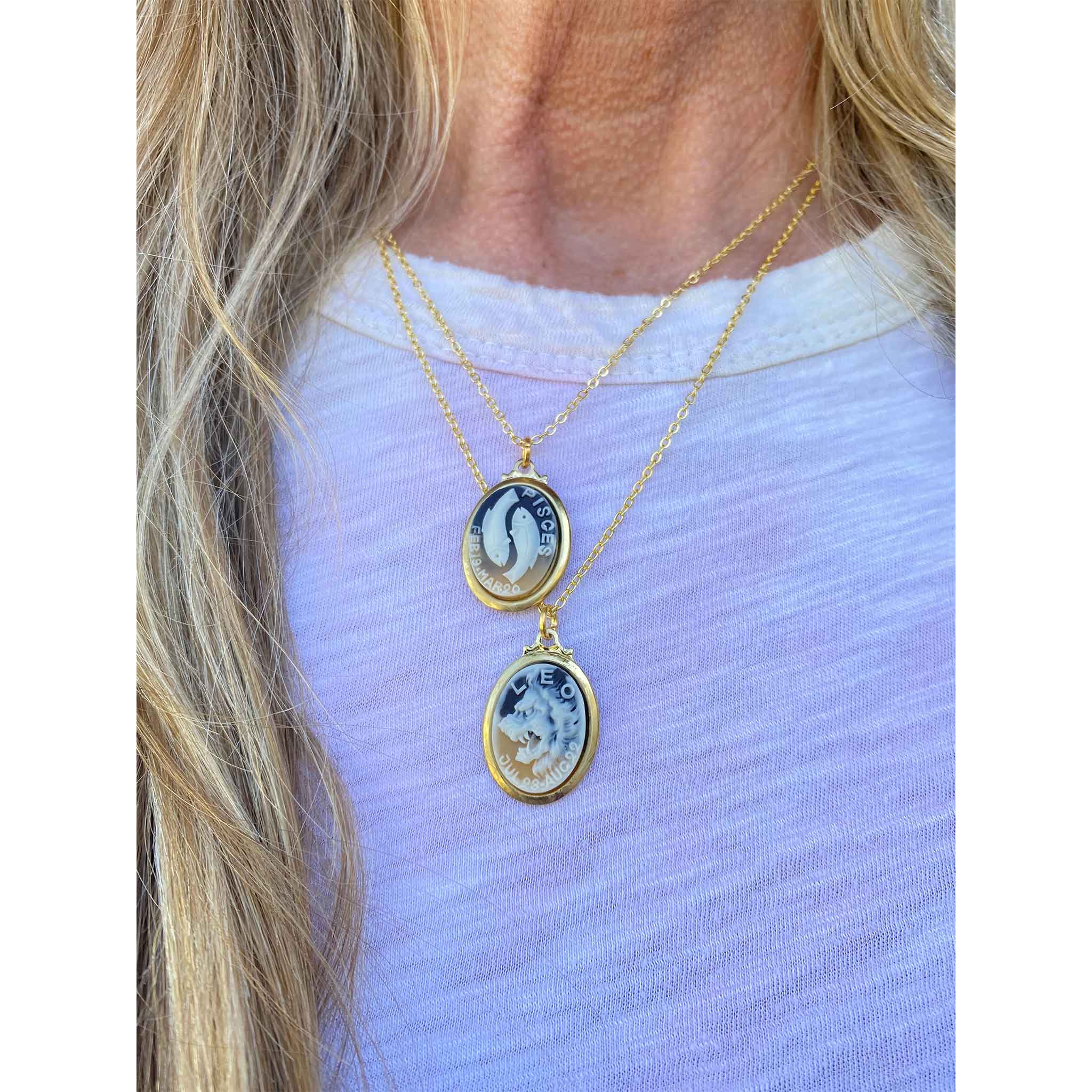 Vintage Japanese Cameo-Style Zodiac Necklace (Classic Color)