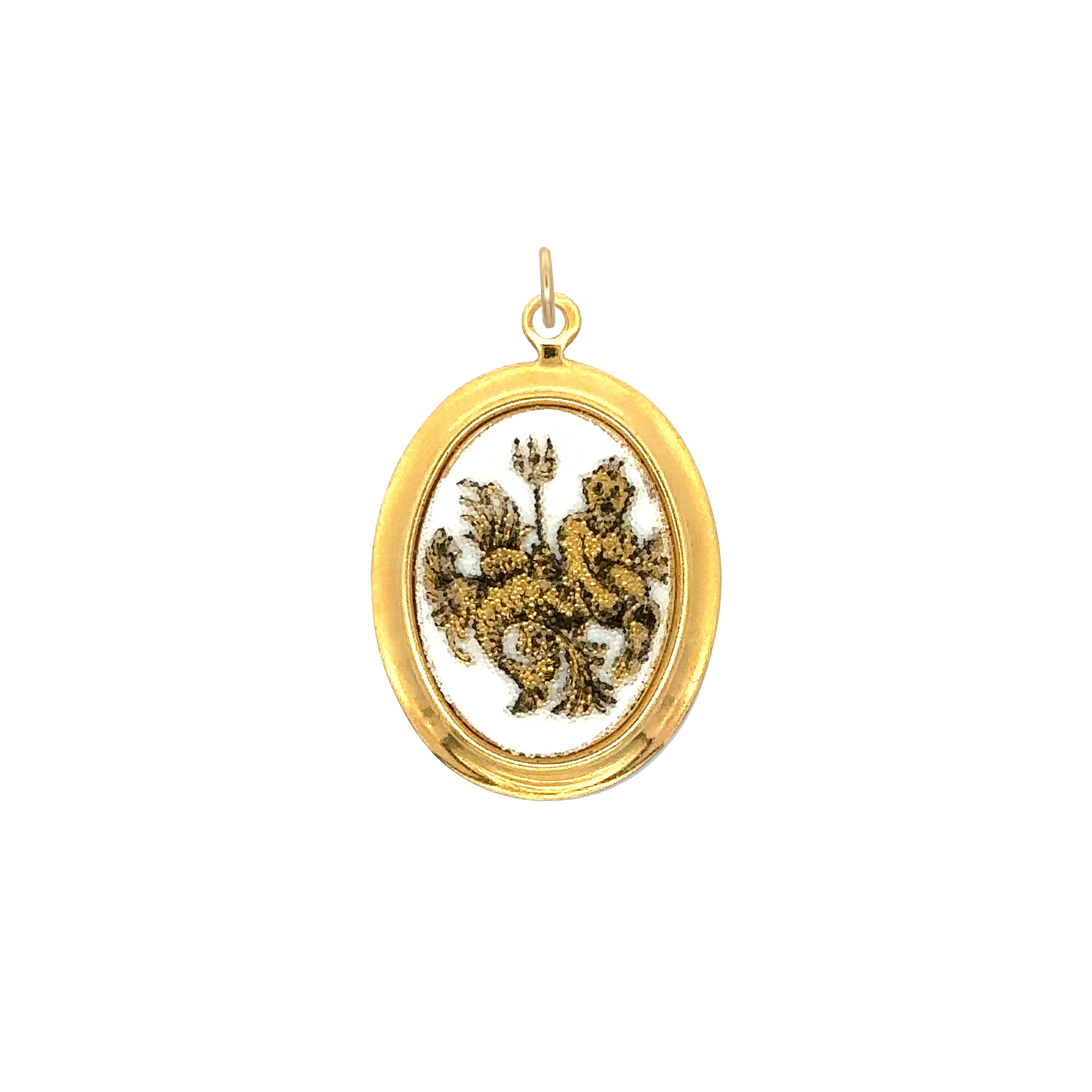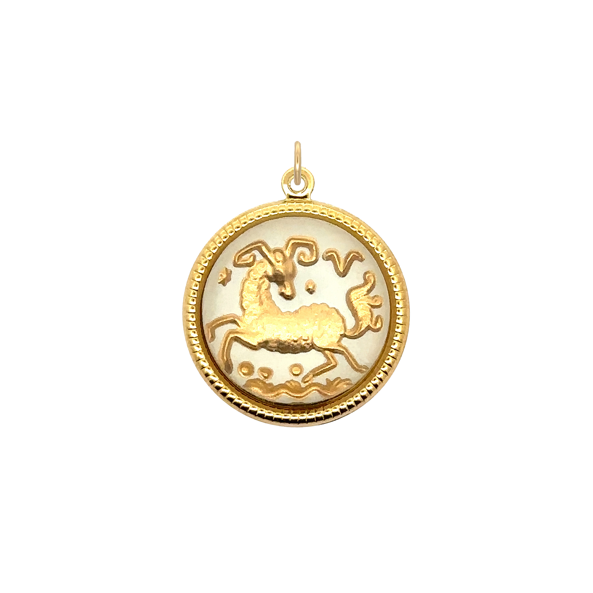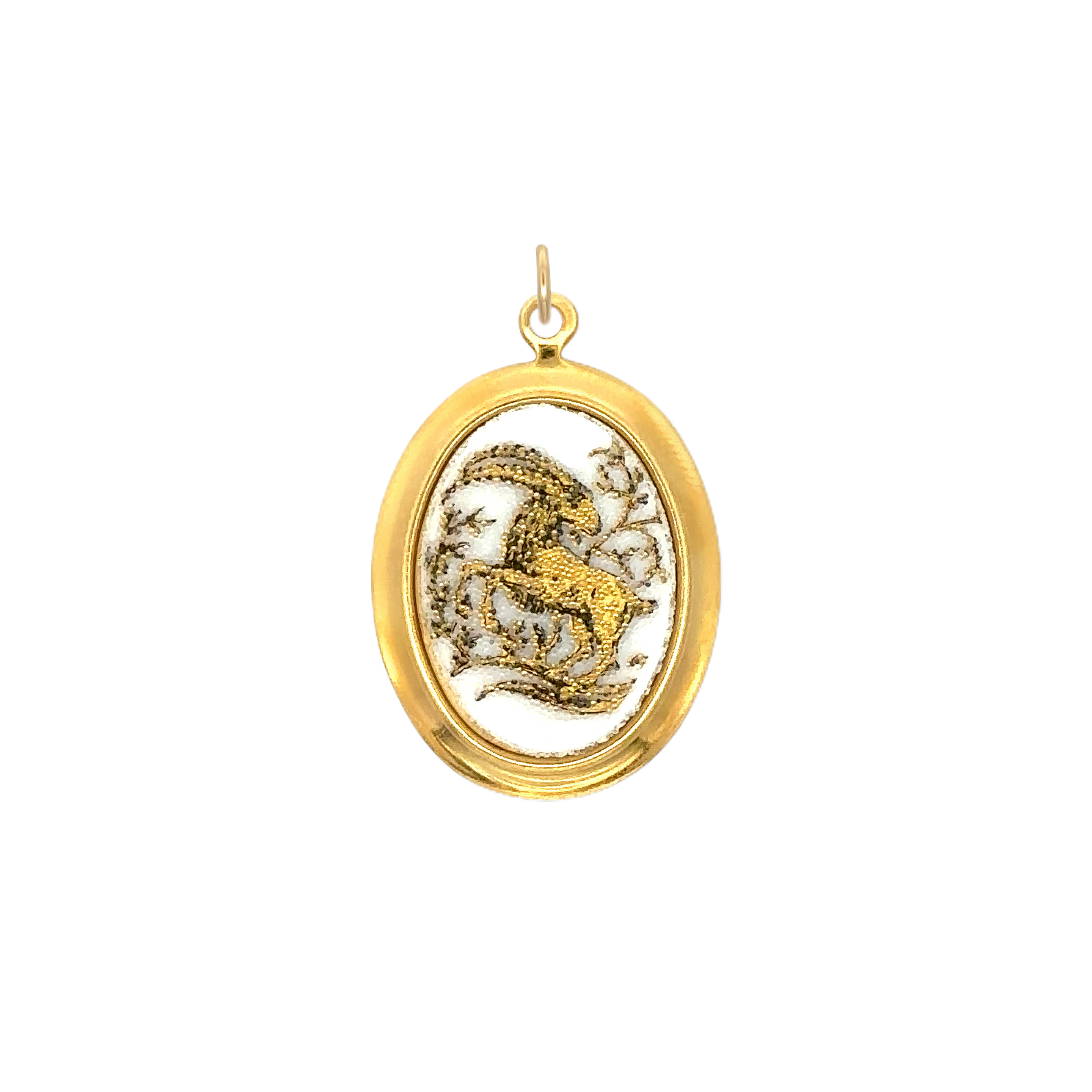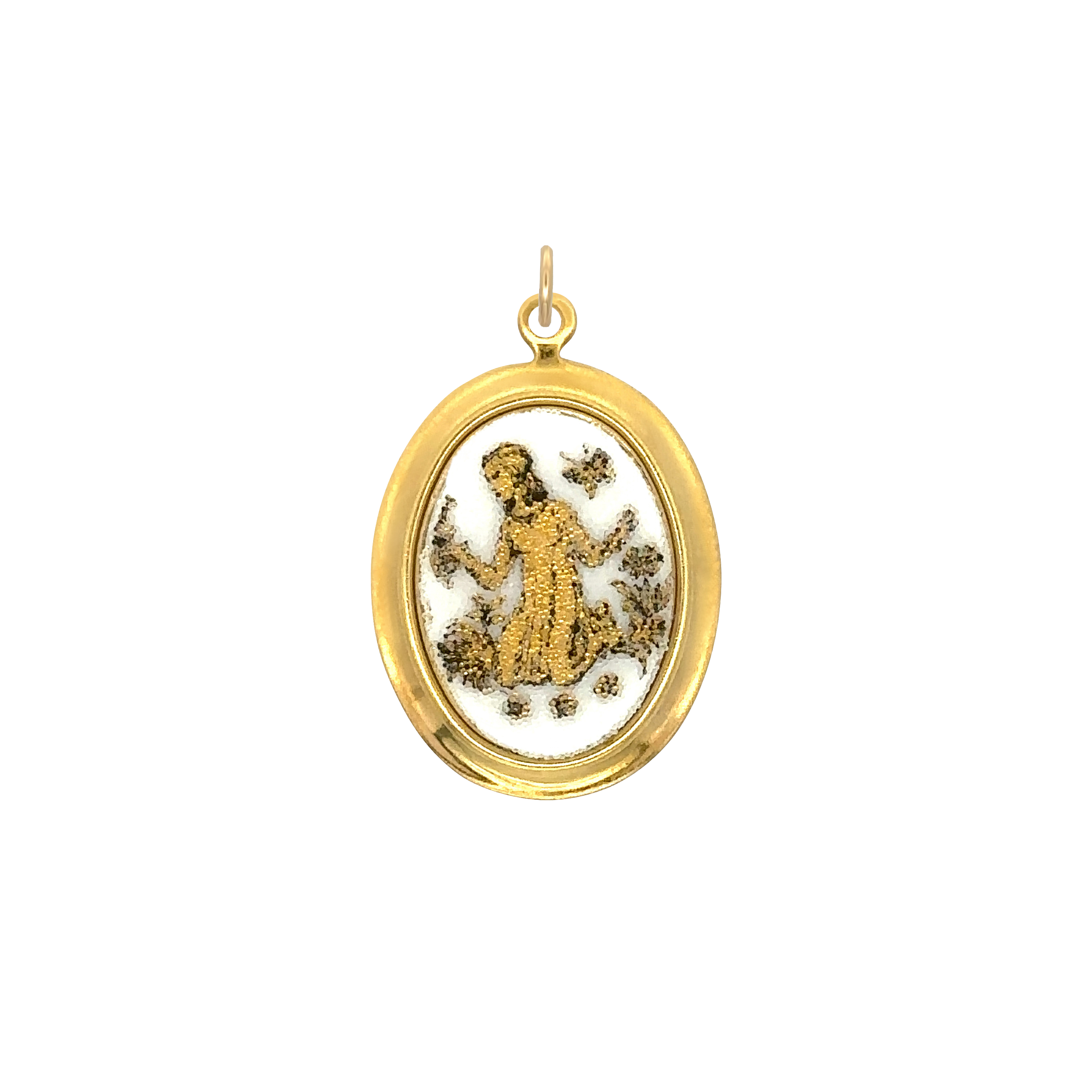 Vintage Japanese Cameo-Style Zodiac Necklace (Classic Color)
