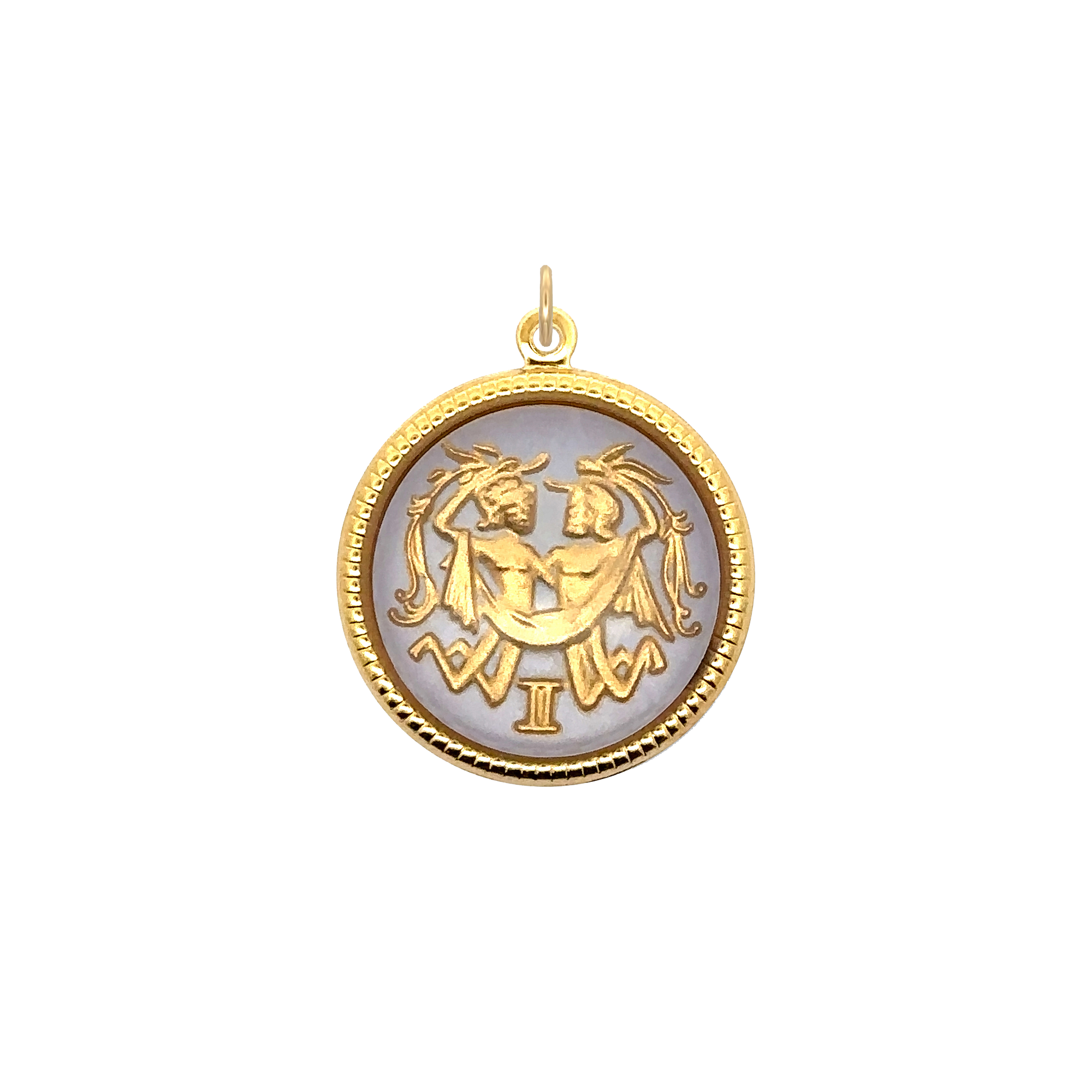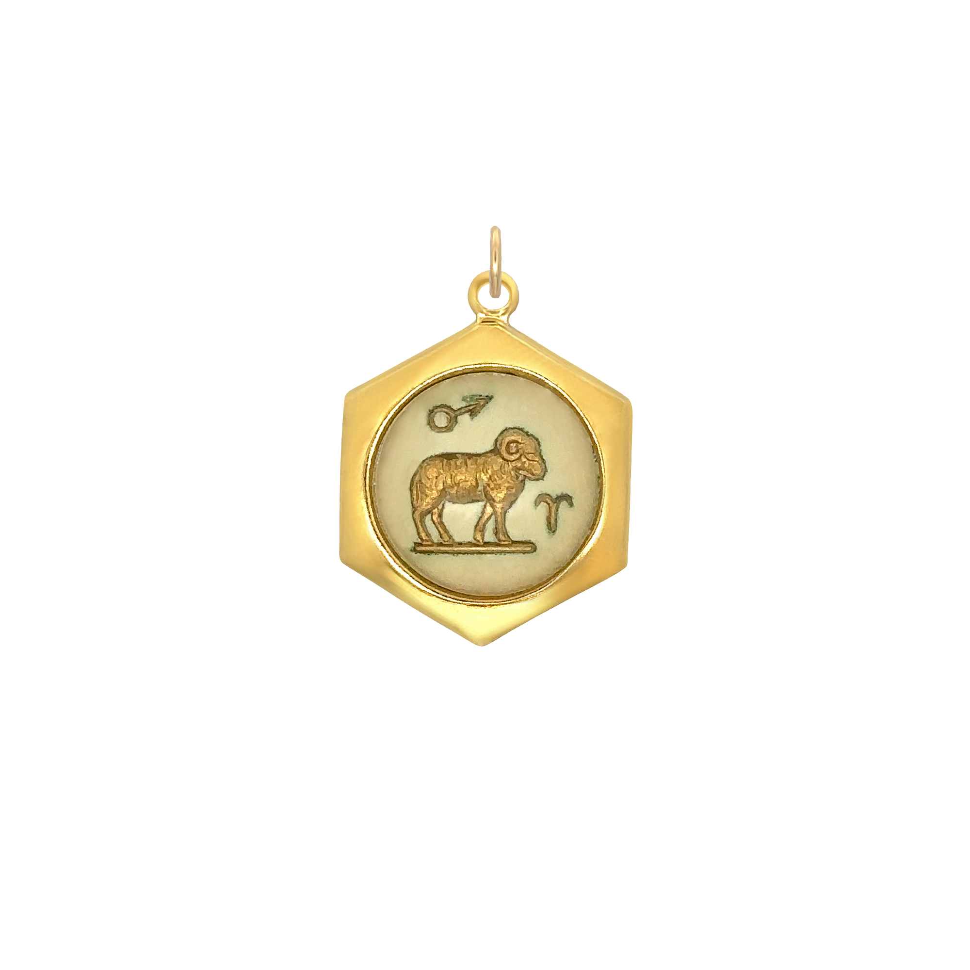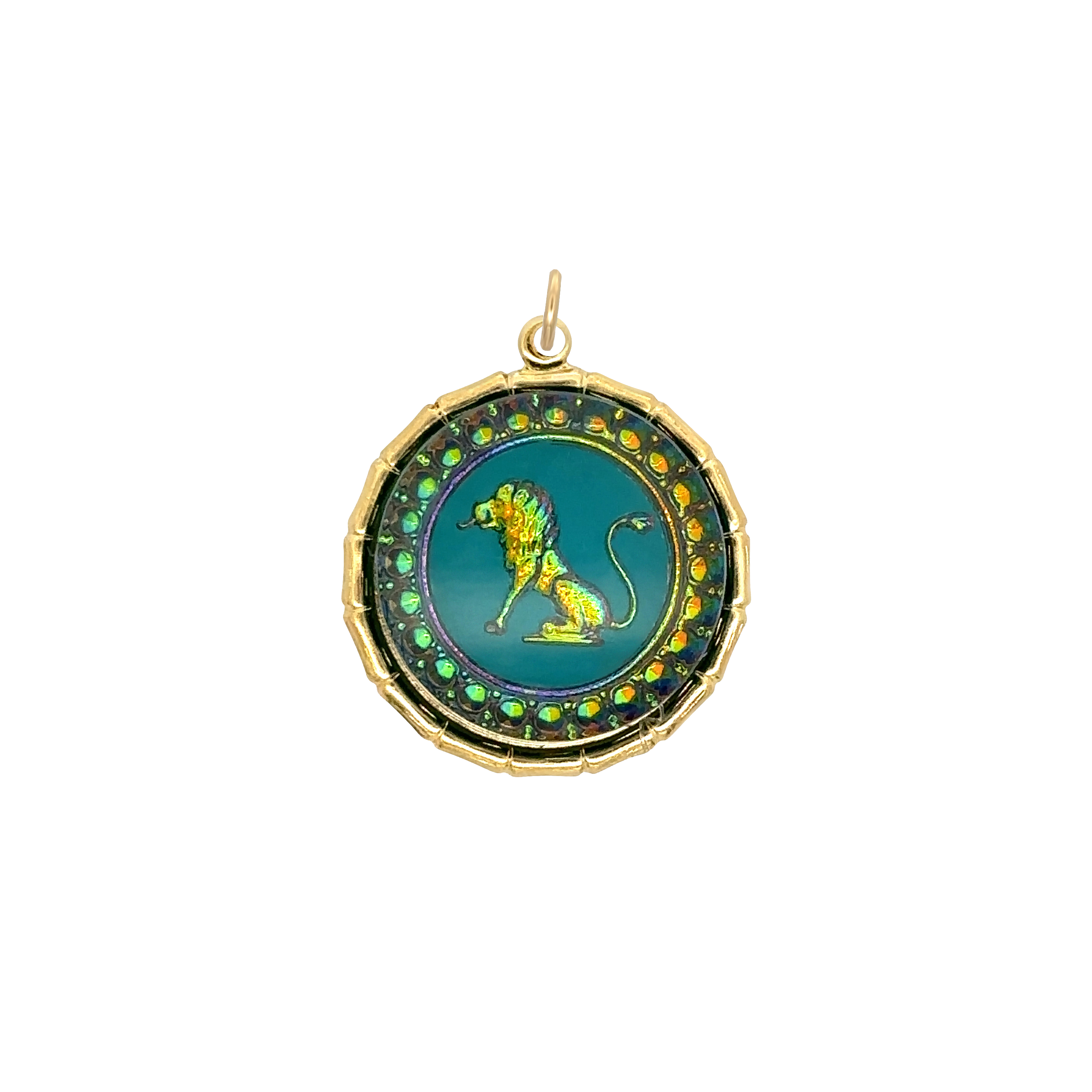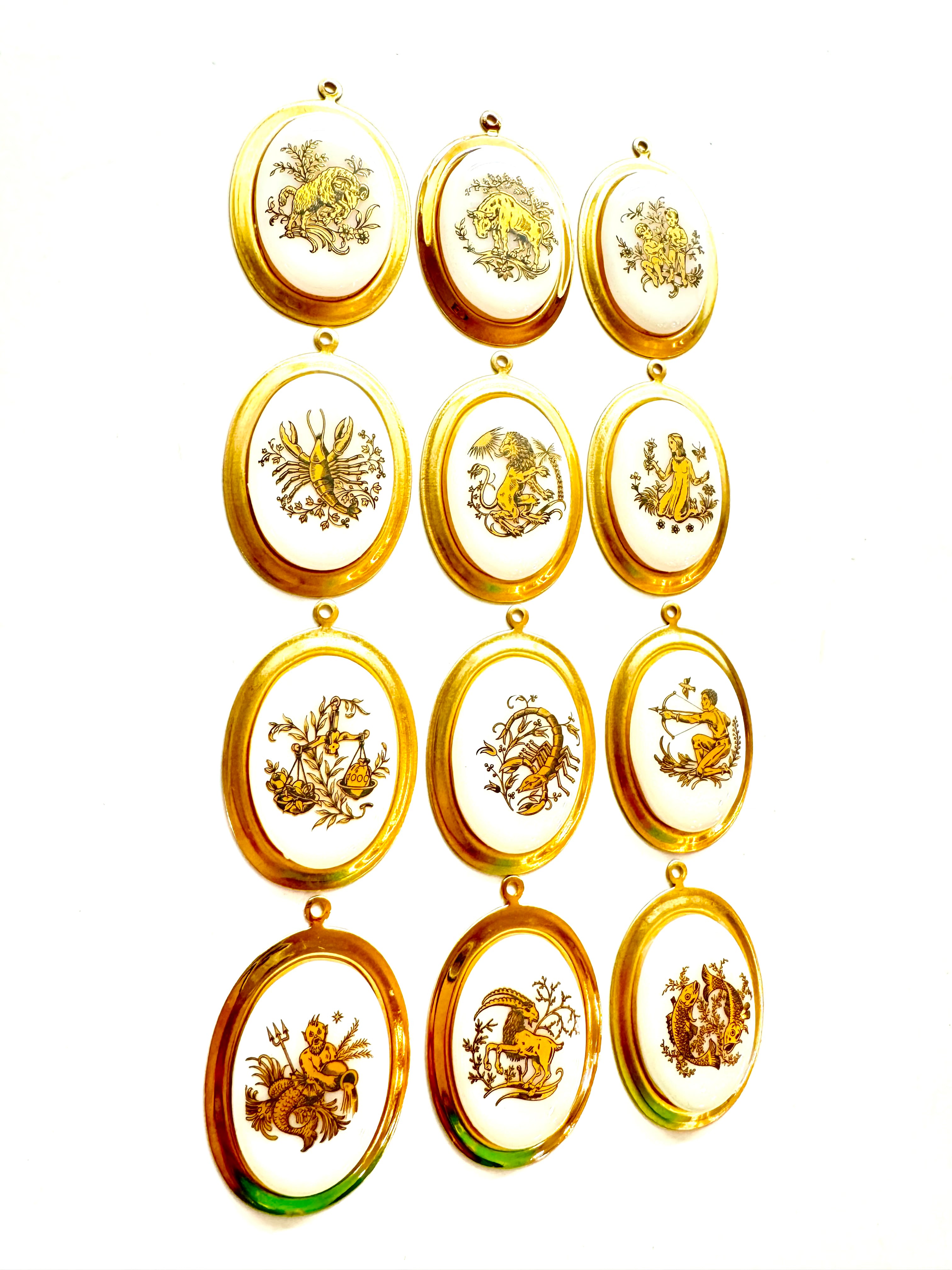 Vintage Glass Zodiac Sign Necklace with Frame - Small
