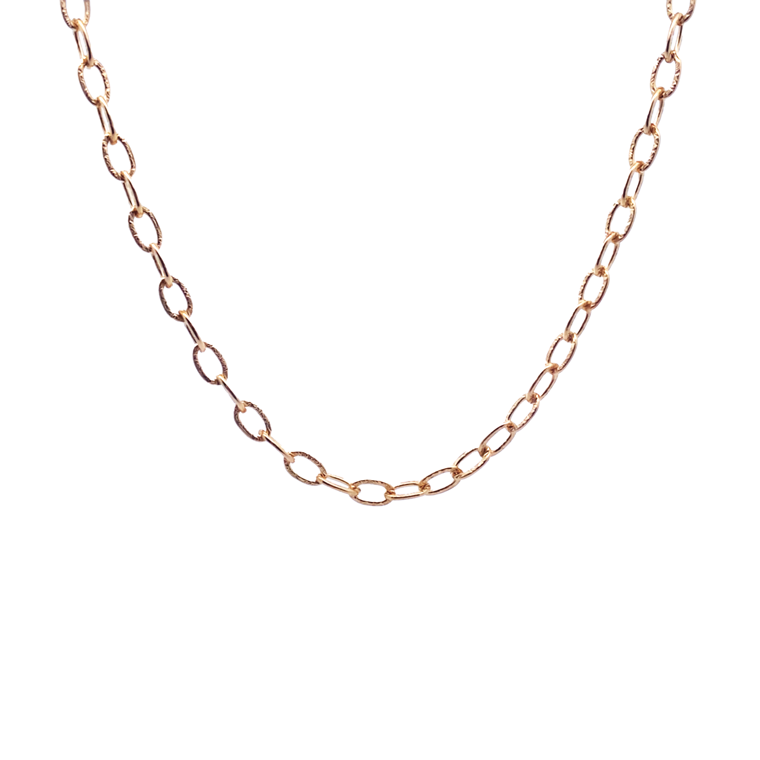 For classic charm necklaces we recommend choosing any chain with a circular chain style (avoid the paperclip styles). The light circle charm chain, heavy round chain and rolo chain are all excellent choices.