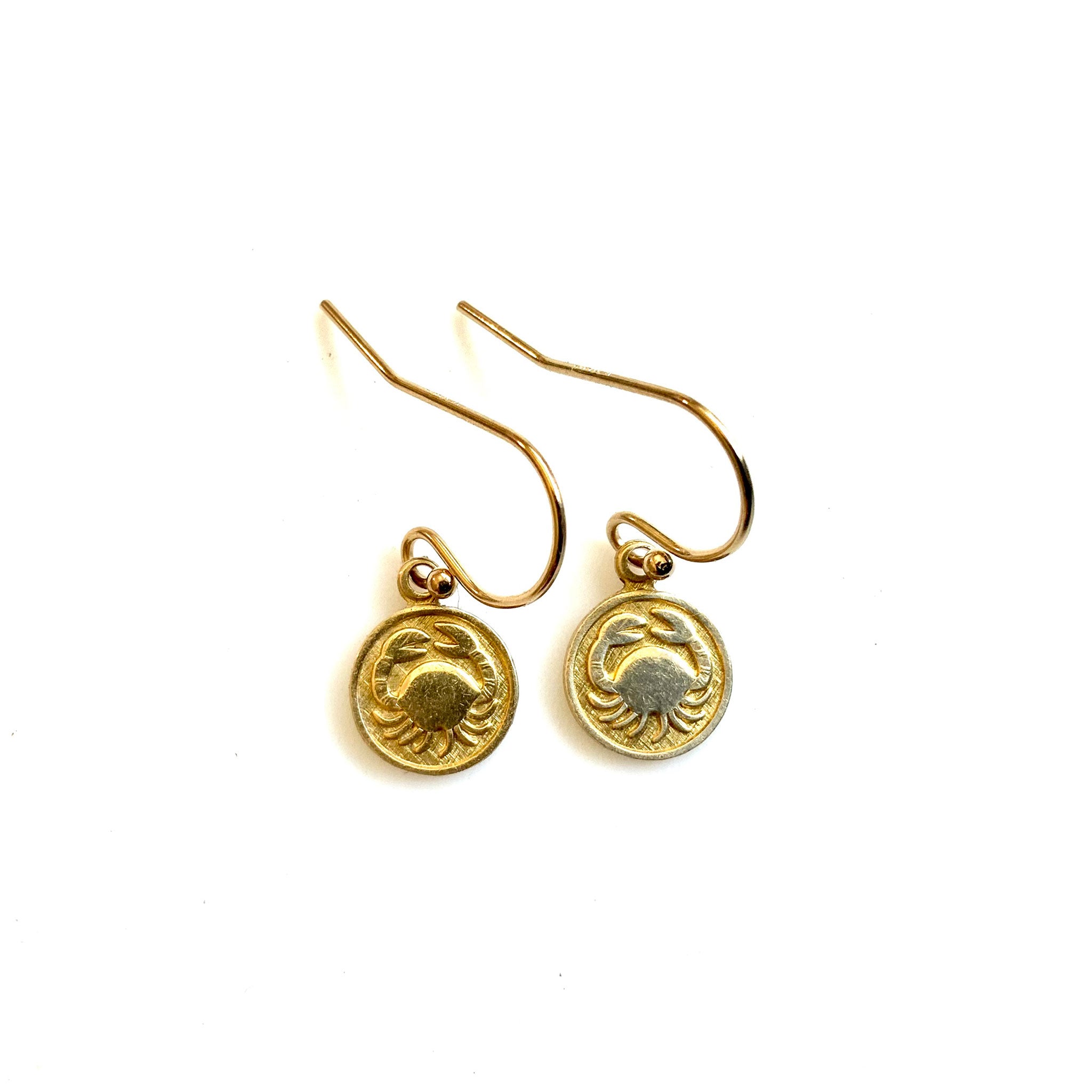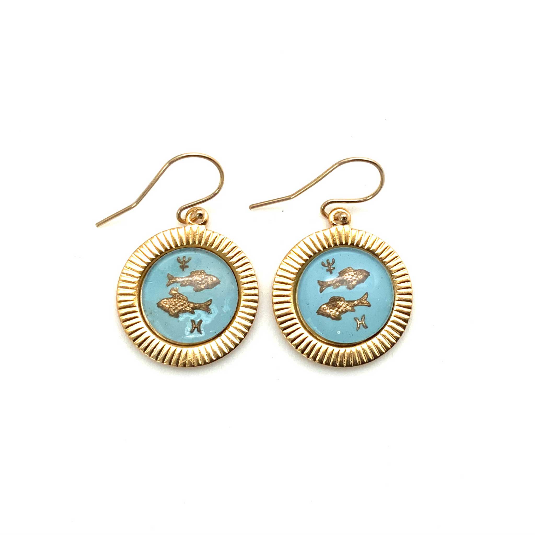 Small Vintage Glass Zodiac Sign Charm Earrings with Frame